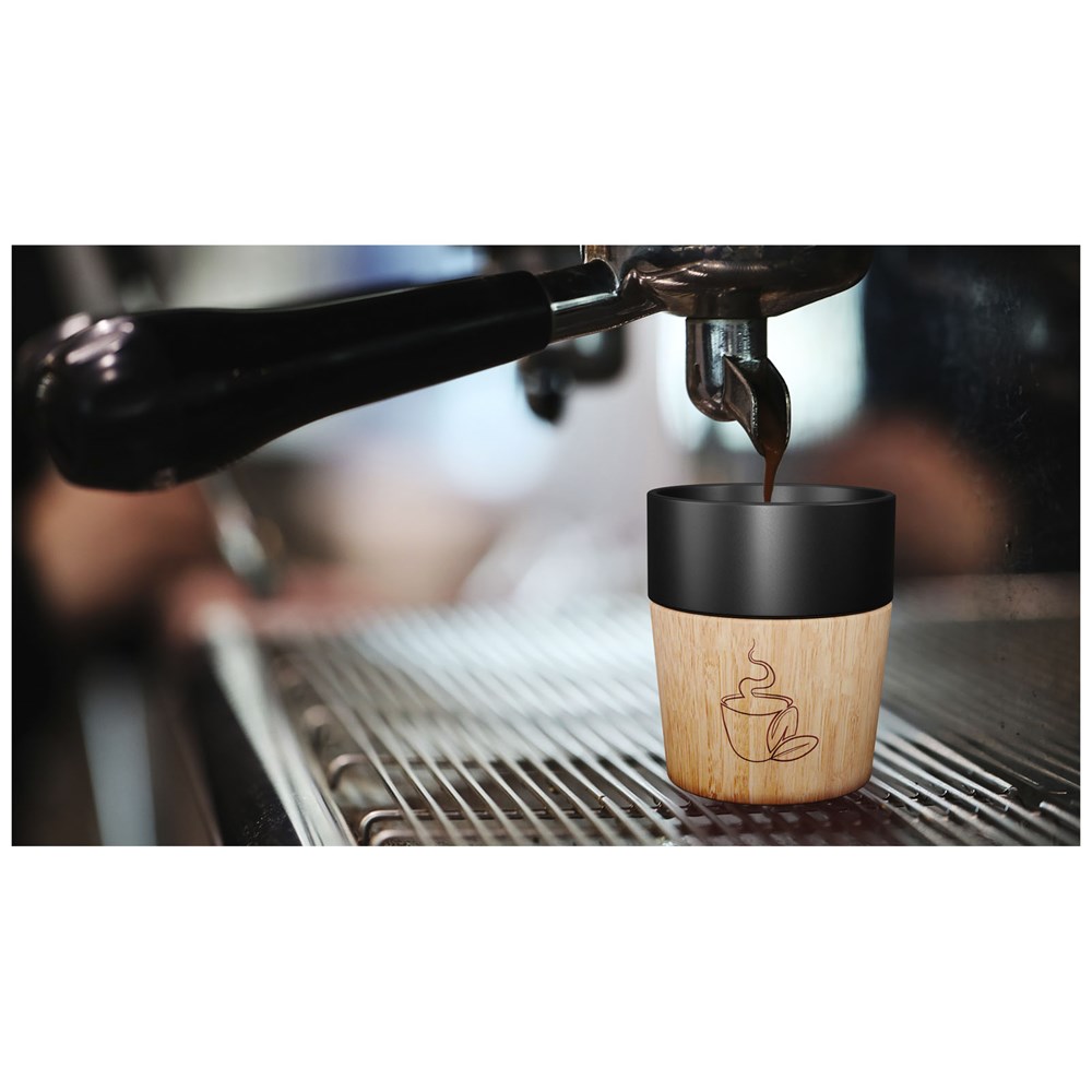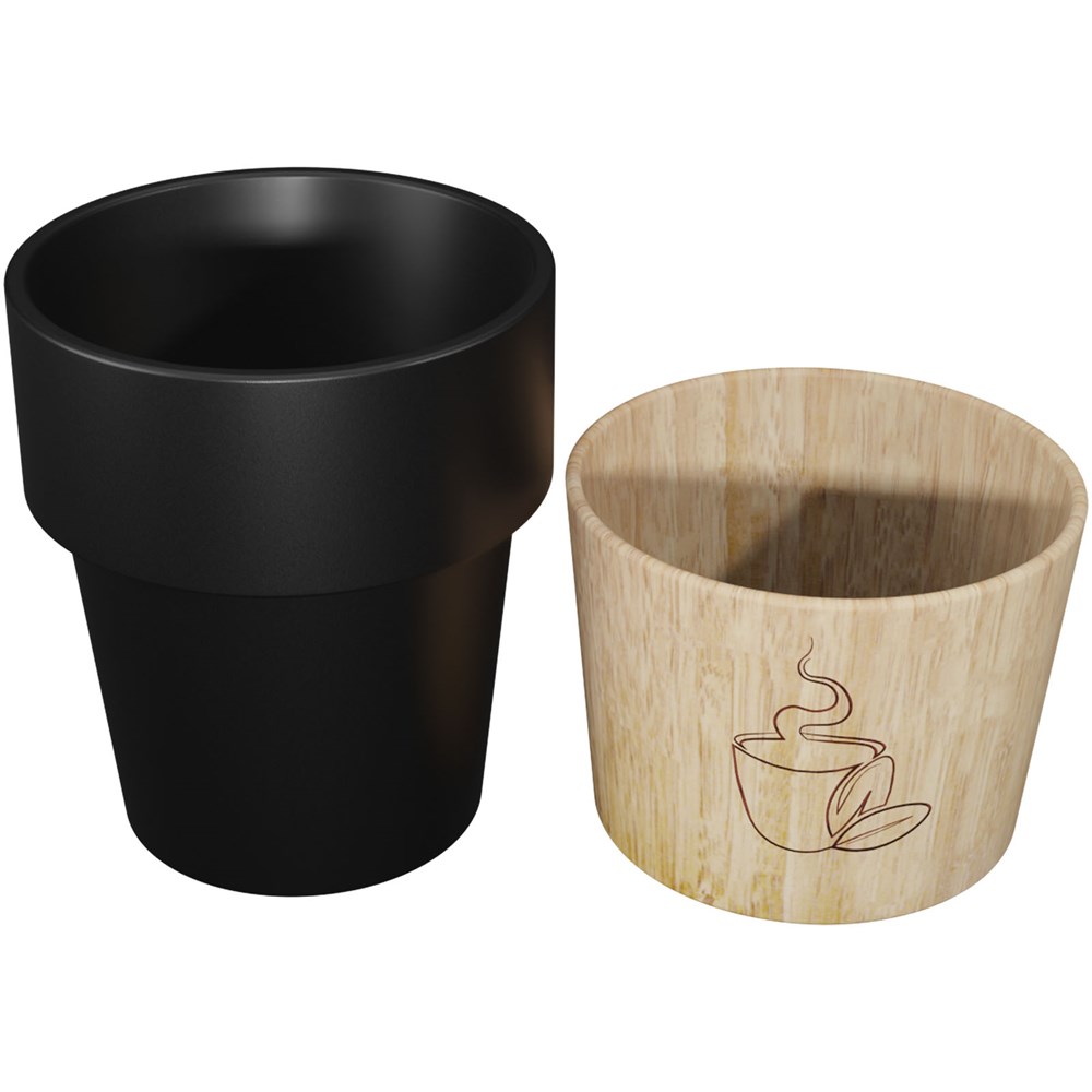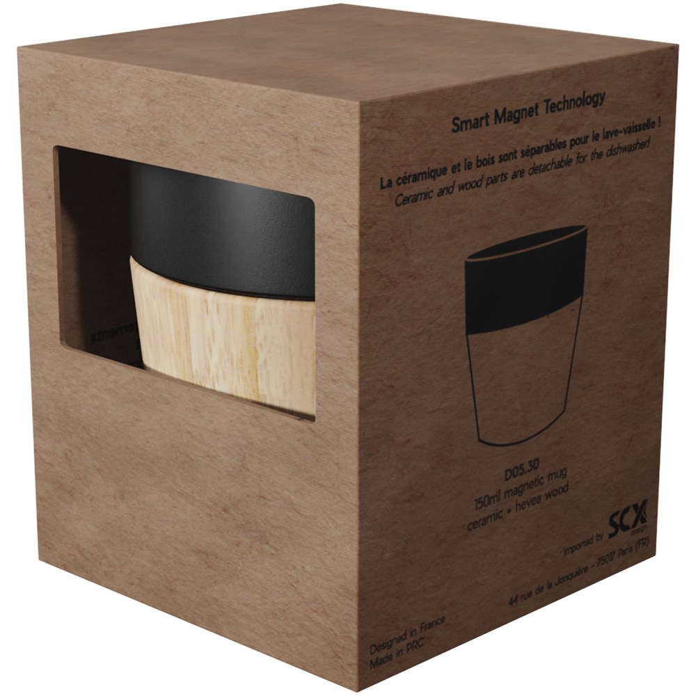 150 ml-Keramikbecher mit magnetischem Holzboden, ideal für Espresso oder Espresso Lungo. Der Holzboden lässt sich mit Hilfe der intelligenten Magnettechnik vom Keramikbecher lösen und so leicht reinigen. Der Keramikbecher ist spülmaschinenfest. Wird in einer Geschenkbox aus recyceltem Kraftpapier (7,6 x 7,6 x 9,5 cm) geliefert.
