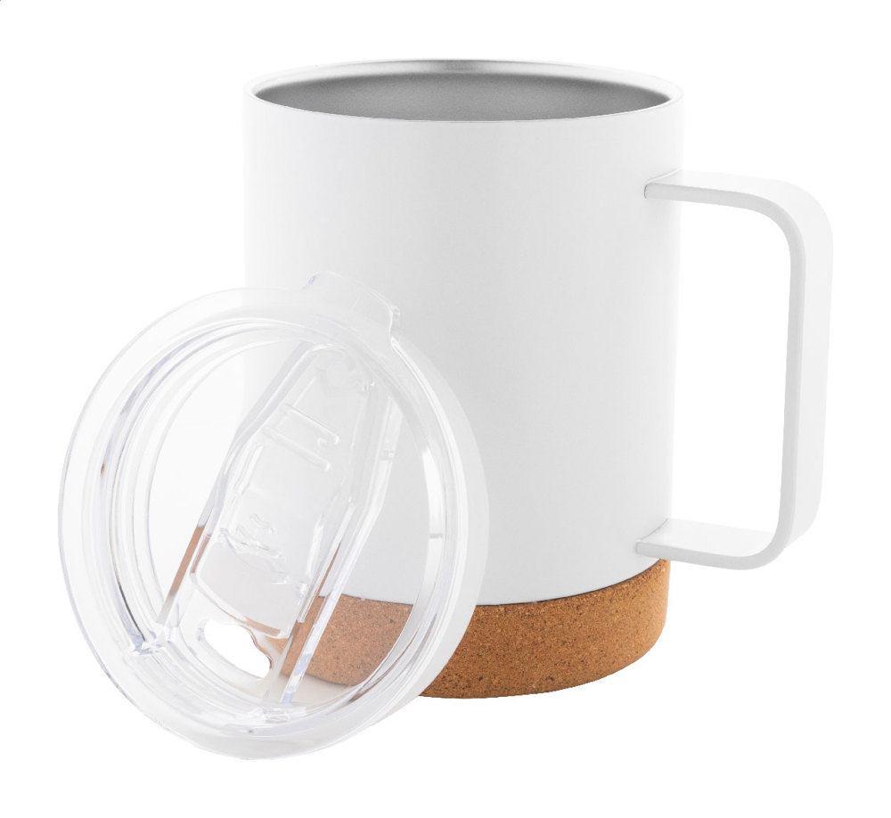 Doppelwandiger Thermobecher aus Edelstahl mit Trinkdeckel und Fuß aus natürlichem Kork, einzeln... mehr