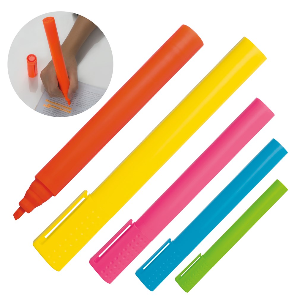 XXL Textmarker in verschiedenen leuchtenden Farben. Hiermit fällt Ihre Werbung garantiert nicht nur auf jedem Schreibtisch auf. Durch seine Größe bietet der Textmarker extra viel Platz für Ihre Werbung. Diese drucken wir auf den Schaft. Rundumdruck auf Anfrage möglich.