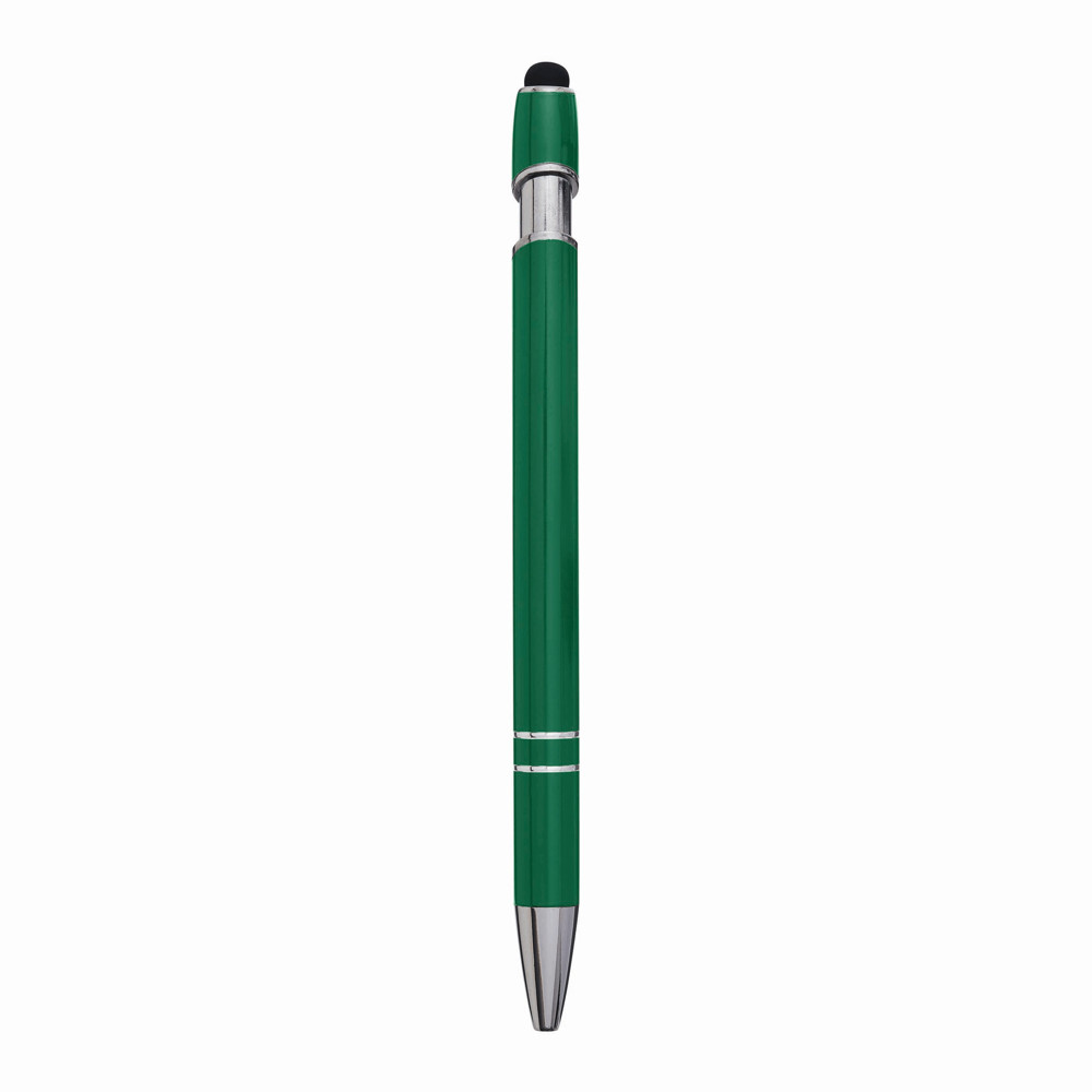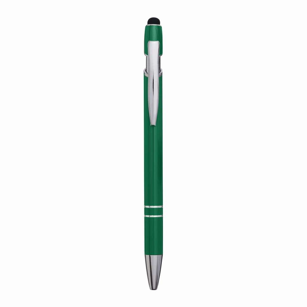 Aluminium-Kugelschreiber MERCHANT: mit glänzendem Aluminium-Schaft, Druckmechanismus, am Schaftende mit Touchscreen-Spitze, blauschreibend