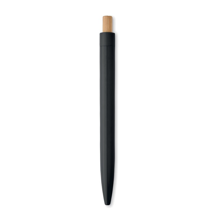 Druckkugelschreiber aus recyceltem ABS. Drücker aus Bambus. Blaue Tinte.