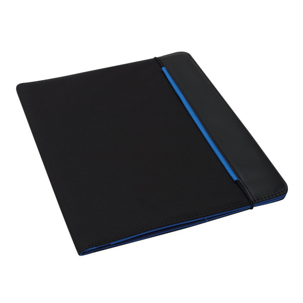 Konferenzmappe YOUNG STAR im DIN-A4-Format: Gummiband zum Verschließen, innen diverse Einsteckfächer, inkl. Schreibblock (liniert), Schlaufe für 1 Schreibgerät, innen farbig abgesetzt - außen schwarz mit farbigem Zierstreifen