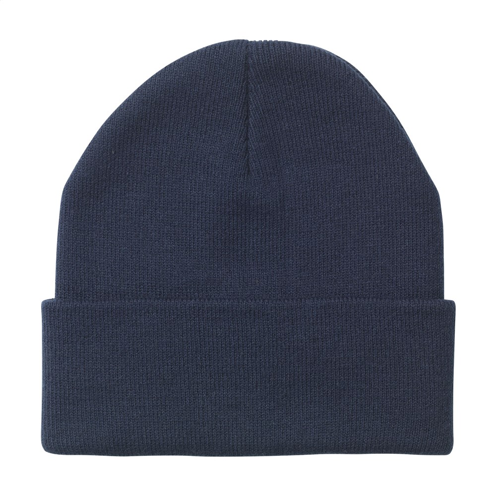 Gestrickte Mütze mit Umschlag. Aus 100% RPET-Polyester. Beliebt, herrlich warm und von guter Qualität. Einheitsgröße. Mit schwarzem Etikett zur Dekoration. GRS-zertifiziert. Recyceltes Material insgesamt: 100%.