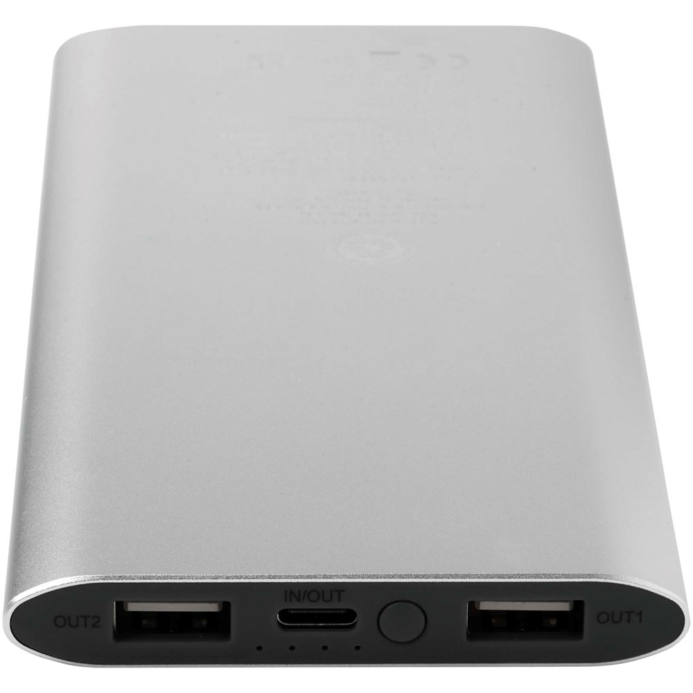 Powerbank mit Typ-C-Ein-/Ausgang und 2x USB-A-Anschlüssen, sodass 3 Geräte gleichzeitig aufgeladen werden können. Sie unterstützt auch das kabellose Aufladen mit 5W für alle Qi-fähigen Geräte. Die Powerbank ist mit einem 8.000 mAh Lithium-Polymer-Akku ausgestattet, der eine maximale Ausgangsleistung von 10W liefert. Diese Powerbank besteht zu 28% aus RCS-zertifiziertem, recyceltem Kunststoff. Im Lieferumfang enthalten ist ein TPE-Ladekabel vom Typ-C auf USB-A.