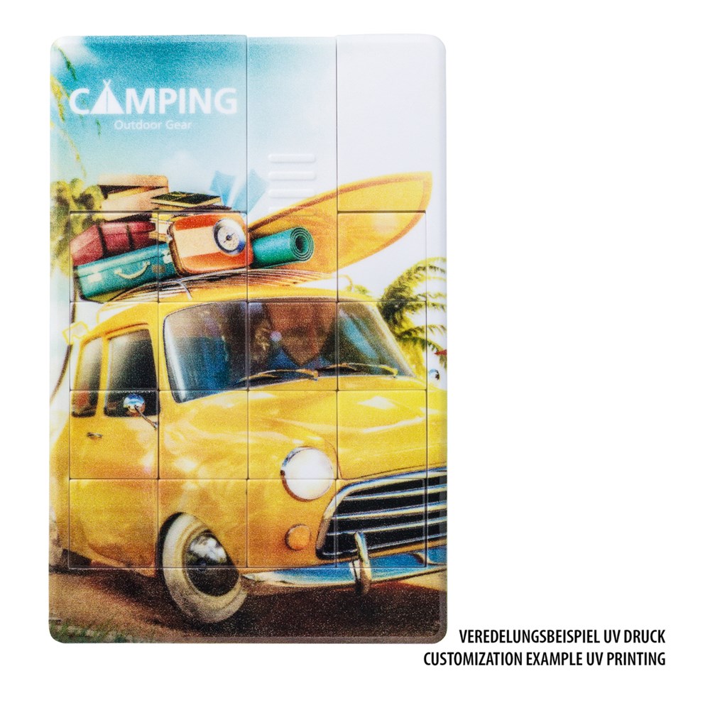 Dieses Puzzle mit integriertem USB-Stick ist vollflächig per UV-Druck gestaltbar. Machen Sie Ihr Logo und Ihre Werbebotschaft so einprägsam wie nie und gestalten Sie Spielspaß, gepaart mit Funktionalität.
