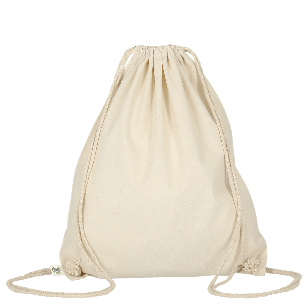 Turnbeutel aus biologisch angebauter Baumwolle (Bio-Baumwolle / Organic Cotton), zertifiziert nach OEKO-TEX Standard 100, dank robuster Zugbänder/Kordeln praktisch als Rucksack tragbar! Größe des Beutels: ca. 38 x 46 cm