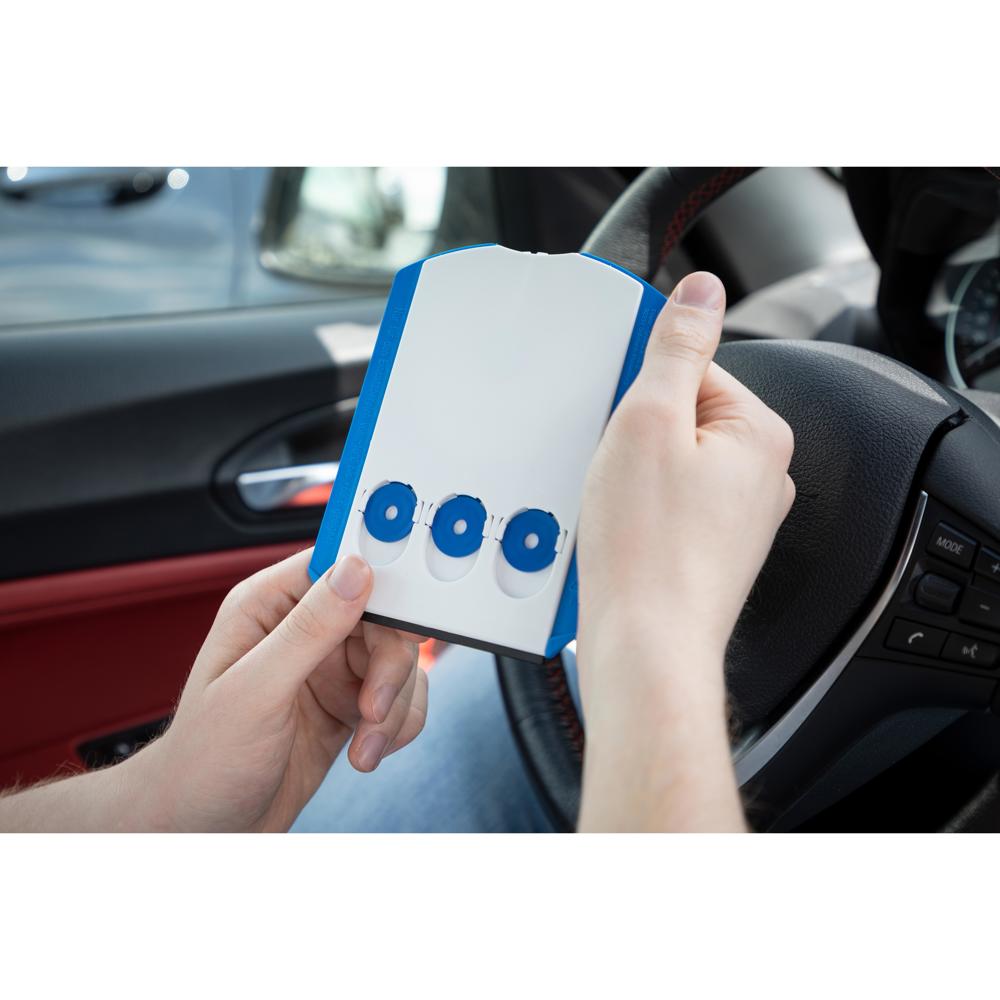 Kunststoff-Parkscheibe mit glatter Kratzkante, Kratzzacken und Wasserabstreifer. Auf der Rückseite befinden sich 3 Halterungen für Einkaufswagenchips oder 1 Euro Münzen. Standardmäßig mit 3 bunt gemischten Chips bestückt, Wunschfarben auf Anfrage. Entspricht Paragraph 42 StVO. Einsetzbar von -10°C bis +60°C. Auf Anfrage auch in verschiedenen Sprachvarianten erhältlich.