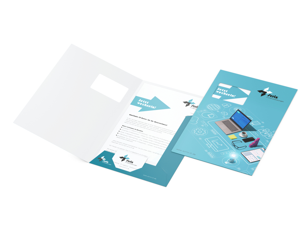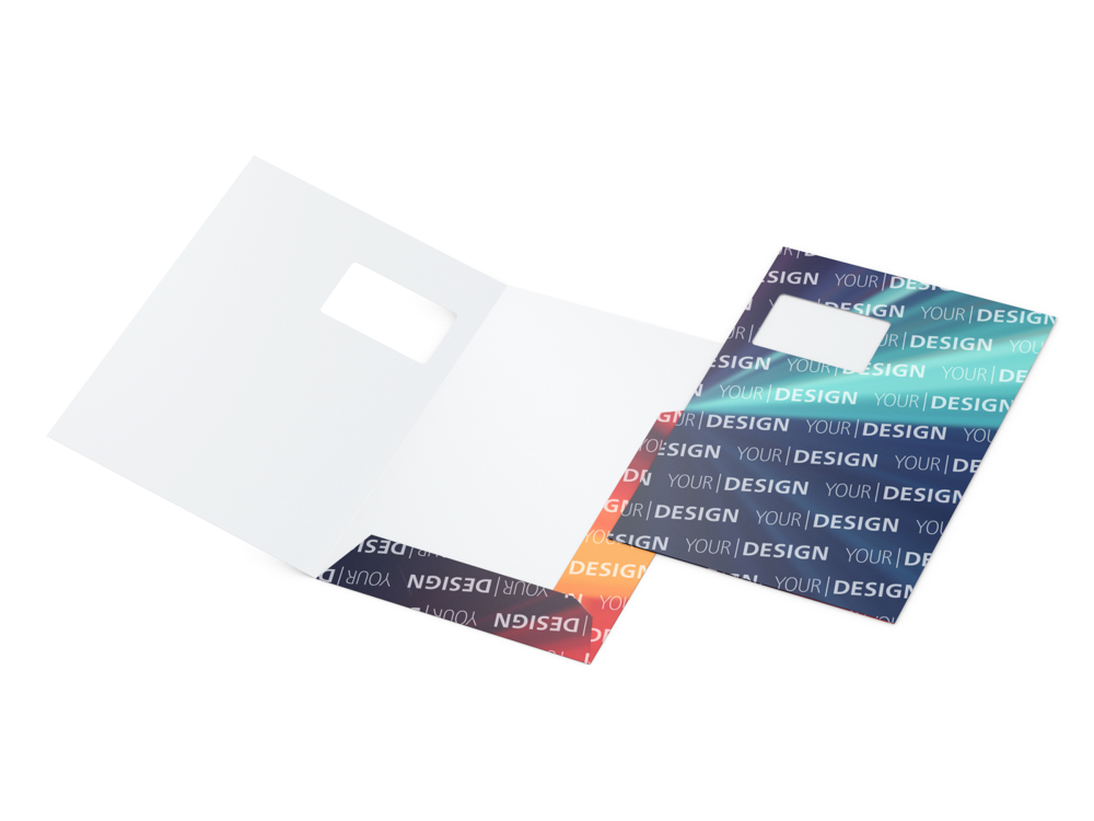 Präsentationsmappe Bestseller, Füllhöhe 1 mm, mit Fenster, 4/0farbig, Lack einseitig