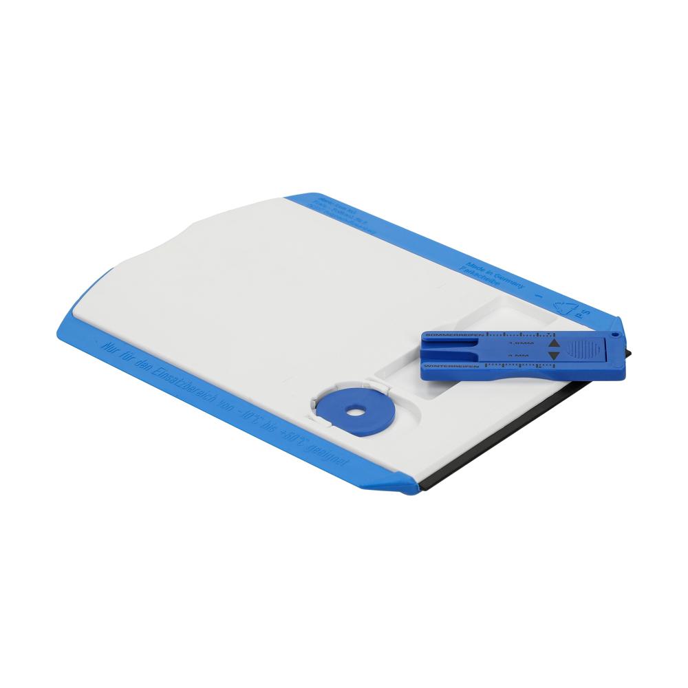Kunststoff-Parkscheibe mit glatter Kratzkante, Kratzzacken und Wasserabstreifer. Auf der Rückseite befinden sich 2 standardmäßig befüllte Halterungen für einen Einkaufswagenchip und einen Reifenprofilmesser. Entspricht Paragraph 42 StVO. Einsetzbar von -10°C bis +60°C. Auf Anfrage auch in verschiedenen Sprachvarianten erhältlich.