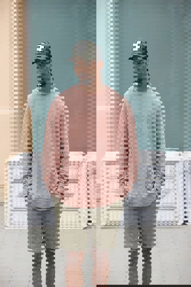 Frontpanel aus 100% Baumwolle und Panel auf der Rückseite aus 100% recyceltem Polyester. Design mit 5 Panels. Aufnäher aus Baumwoll-Serge, der zur Dekoration aufgesetzt wurde.