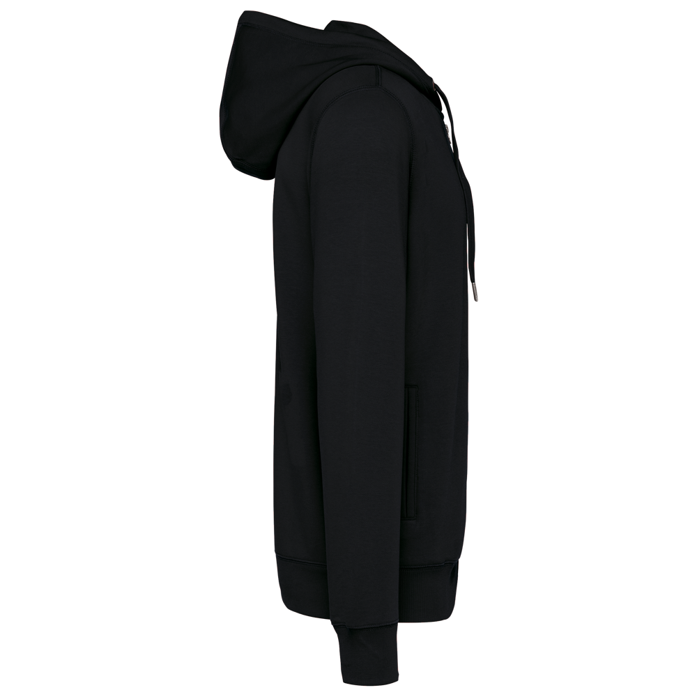 80 % recycelter Baumwolle / 20 % recyceltem Polyester post-consumer. Oxford Grey 75% biologischer Baumwolle / 25% recyceltem Polyester post-consumer. Ungebürstetes LST-Molton (Low Shrinkage Terry). Enzymwaschung. Gerader Schnitt. 2 Paspeltaschen auf der Vorderseite. Strickbündchen an Ärmeln und Saum, gefütterte Kapuze mit Ton-in-Ton Kordelzug und Metallspitze. Halbmondförmiger Halsausschnitt auf der Rückseite für eine einfache Markenveredelung auf der Innenseite. Nackenband mit Fischgrätmuster und V-Ausschnitt. Kein Markenetikett am Kragen, nur Größenkennzeichnung, für eine leichtere Veredelung.