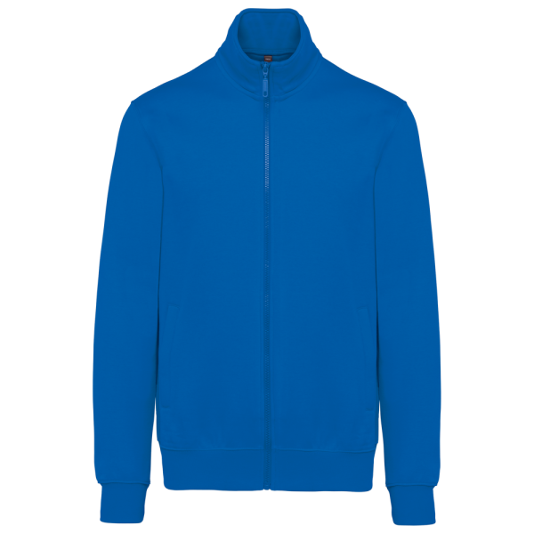 80 % Baumwolle / 20 % Polyester. Außenseiteaus 100% Baumwolle. LSF-Behandlung (Low Shrinkage Fleece: vorgeschrumpftes Molton). Gebürstetes Fleece mit drei Fäden aus gekämmter Baumwolle. Gerader Schnitt. Gerade geschnittene Ärmel. Hochgeschlossener Kragen. Ton-auf-Ton Kunststoff-Reißverschluss. 2 Paspeltaschen mit Reißverschluss an den Seiten. Halbmondförmiger Halsausschnitt auf der Rückseite für eine einfache Markenveredelung auf der Innenseite. 1x1-Strickbündchen an Ärmeln und Saum. Markenetikett zum Abreißen.
