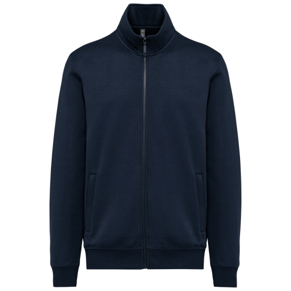 80 % Baumwolle / 20 % Polyester. Außenseiteaus 100% Baumwolle. LSF-Behandlung (Low Shrinkage Fleece: vorgeschrumpftes Molton). Gebürstetes Fleece mit drei Fäden aus gekämmter Baumwolle. Gerader Schnitt. Gerade geschnittene Ärmel. Hochgeschlossener Kragen. Ton-auf-Ton Kunststoff-Reißverschluss. 2 Paspeltaschen mit Reißverschluss an den Seiten. Halbmondförmiger Halsausschnitt auf der Rückseite für eine einfache Markenveredelung auf der Innenseite. 1x1-Strickbündchen an Ärmeln und Saum. Markenetikett zum Abreißen.