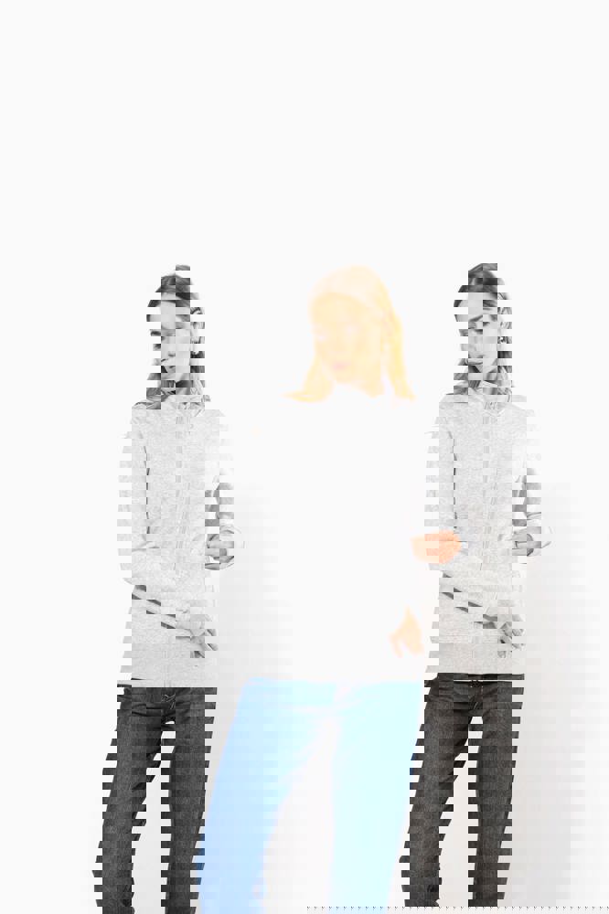 80 % Baumwolle / 20 % Polyester. Außenseiteaus 100% Baumwolle. LSF-Behandlung (Low Shrinkage Fleece: vorgeschrumpftes Molton). Gebürstetes Fleece mit drei Fäden aus gekämmter Baumwolle. Gerader Schnitt. Gerade geschnittene Ärmel. Hochgeschlossener Kragen. Ton-auf-Ton Kunststoff-Reißverschluss. 2 Paspeltaschen mit Reißverschluss an den Seiten. Halbmondförmiger Halsausschnitt auf der Rückseite für eine einfache Markenveredelung auf der Innenseite. 1x1-Strickbündchen an Ärmeln und Saum. Markenetikett zum Abreißen.
