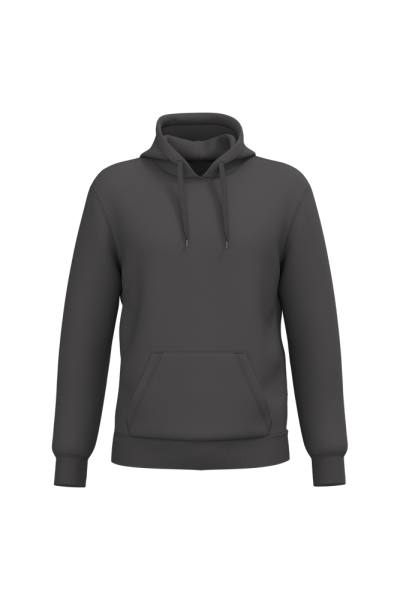 50 % Ringspun-Baumwolle / 50 % recycelter Polyester post-consumer. Gebürstetes Molton. Gerader Schnitt. Zugeschnitten genäht. 2x1 schlauchförmiges Strickbündchen für eine optimale Verarbeitung an Kragen, Ärmelabschlüssen und am unteren Saum. Kängurutasche. Gefütterte Kapuze aus Baumwollpolyester-Jersey mit flachem Kordelzug. Farblich abgestimmtes Jersey-Nackenband auf Krageninnenseite. Kein Markenetikett am Halsausschnitt, nur Größenangabe, zur einfacheren Veredelung.
