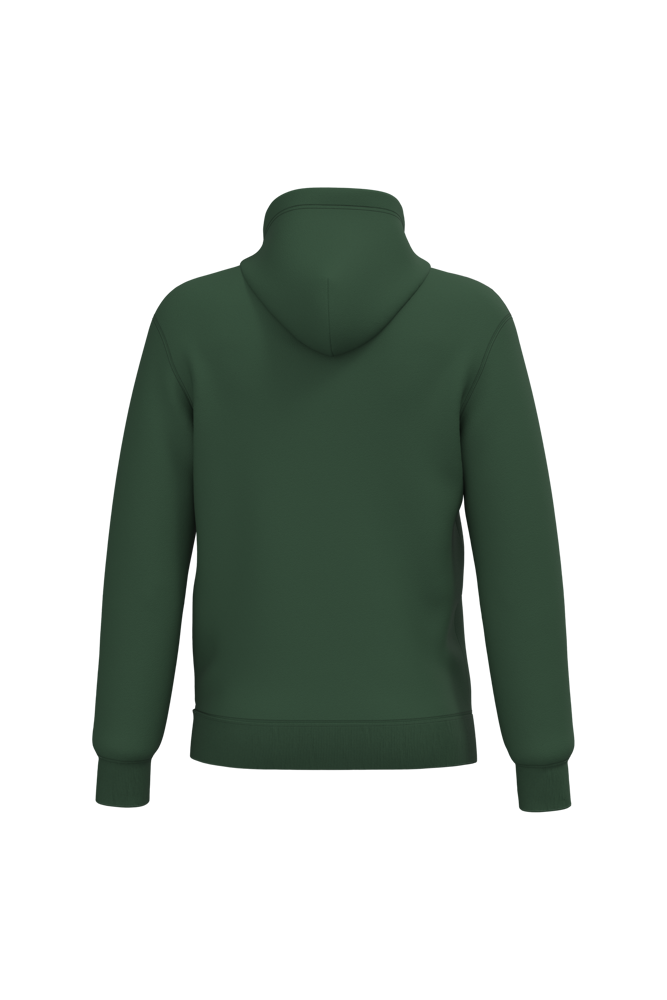 50 % Ringspun-Baumwolle / 50 % recycelter Polyester post-consumer. Gebürstetes Molton. Gerader Schnitt. Zugeschnitten genäht. 2x1 schlauchförmiges Strickbündchen für eine optimale Verarbeitung an Kragen, Ärmelabschlüssen und am unteren Saum. Kängurutasche. Gefütterte Kapuze aus Baumwollpolyester-Jersey mit flachem Kordelzug. Farblich abgestimmtes Jersey-Nackenband auf Krageninnenseite. Kein Markenetikett am Halsausschnitt, nur Größenangabe, zur einfacheren Veredelung.