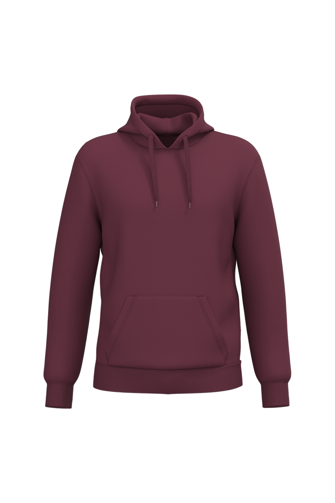 50 % Ringspun-Baumwolle / 50 % recycelter Polyester post-consumer. Gebürstetes Molton. Gerader Schnitt. Zugeschnitten genäht. 2x1 schlauchförmiges Strickbündchen für eine optimale Verarbeitung an Kragen, Ärmelabschlüssen und am unteren Saum. Kängurutasche. Gefütterte Kapuze aus Baumwollpolyester-Jersey mit flachem Kordelzug. Farblich abgestimmtes Jersey-Nackenband auf Krageninnenseite. Kein Markenetikett am Halsausschnitt, nur Größenangabe, zur einfacheren Veredelung.