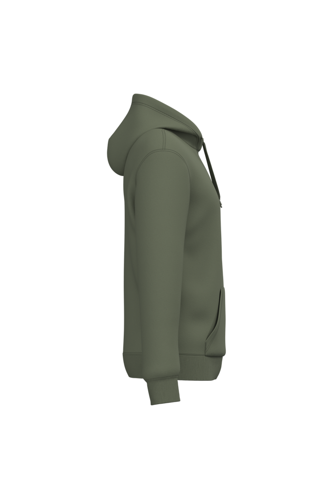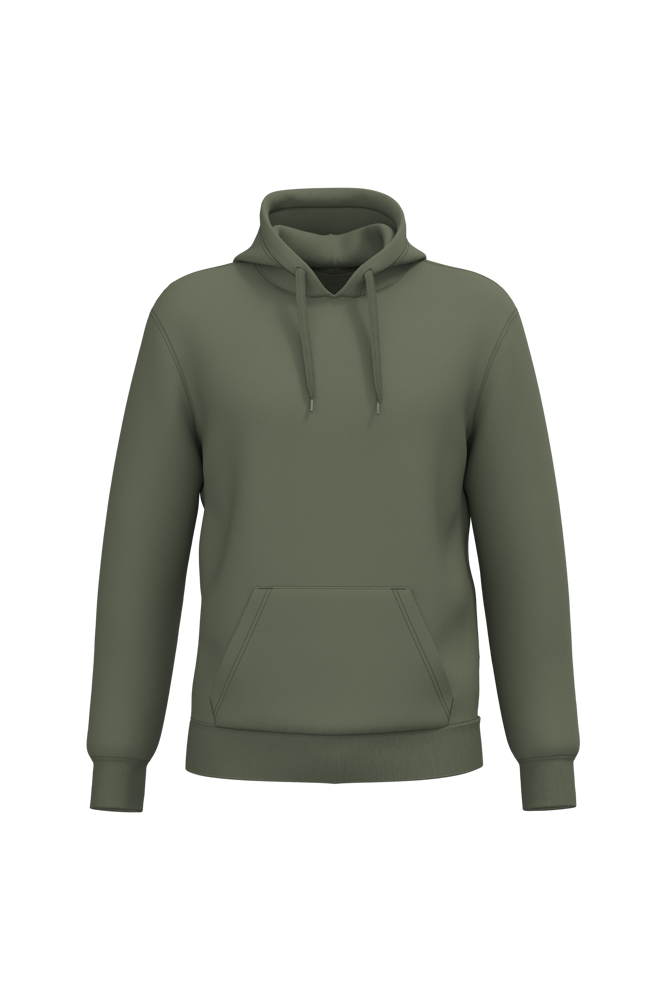 50 % Ringspun-Baumwolle / 50 % recycelter Polyester post-consumer. Gebürstetes Molton. Gerader Schnitt. Zugeschnitten genäht. 2x1 schlauchförmiges Strickbündchen für eine optimale Verarbeitung an Kragen, Ärmelabschlüssen und am unteren Saum. Kängurutasche. Gefütterte Kapuze aus Baumwollpolyester-Jersey mit flachem Kordelzug. Farblich abgestimmtes Jersey-Nackenband auf Krageninnenseite. Kein Markenetikett am Halsausschnitt, nur Größenangabe, zur einfacheren Veredelung.