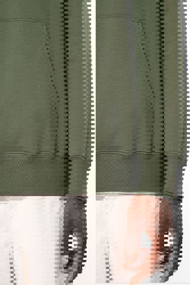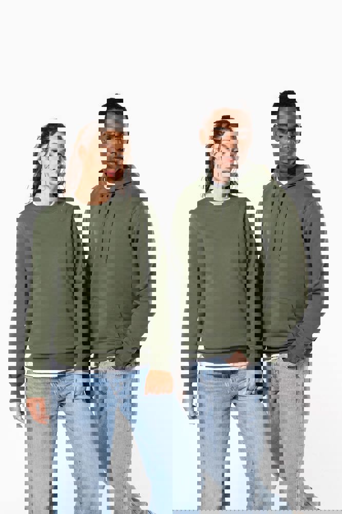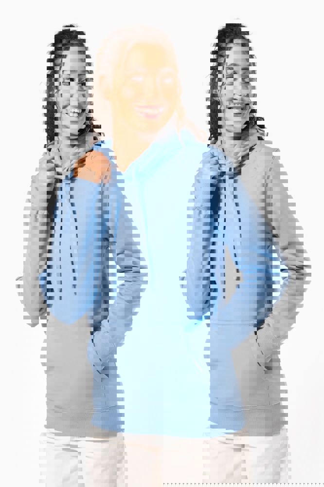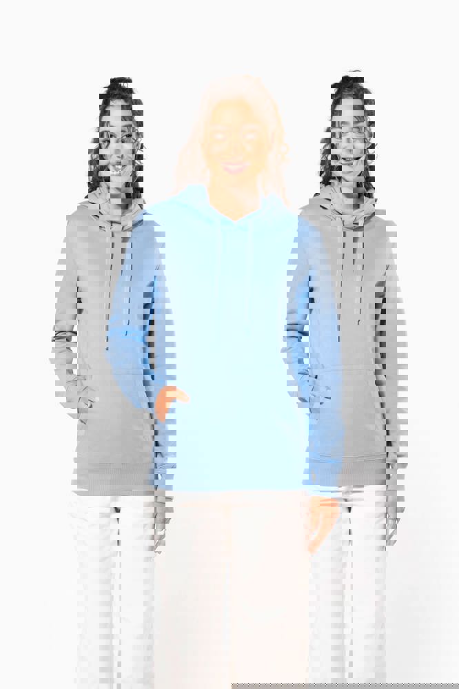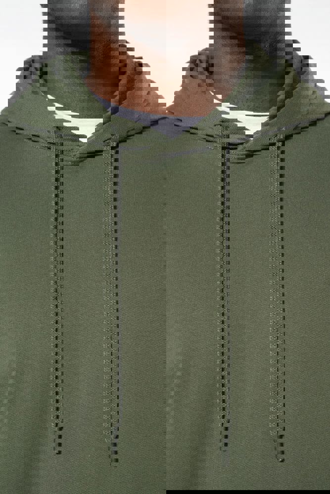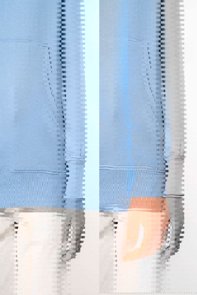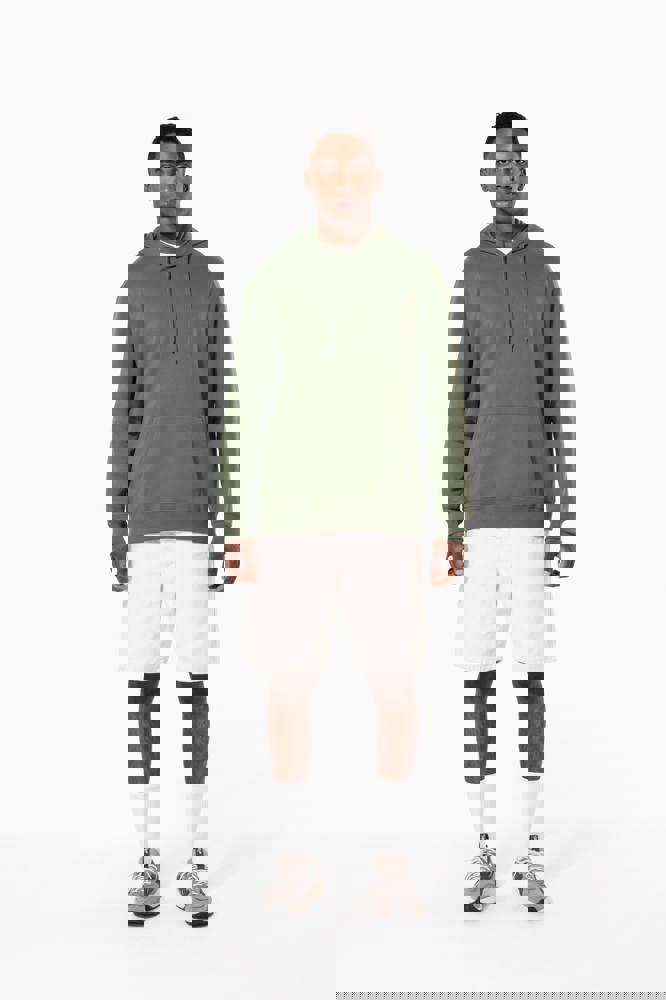 50 % Ringspun-Baumwolle / 50 % recycelter Polyester post-consumer. Gebürstetes Molton. Gerader Schnitt. Zugeschnitten genäht. 2x1 schlauchförmiges Strickbündchen für eine optimale Verarbeitung an Kragen, Ärmelabschlüssen und am unteren Saum. Kängurutasche. Gefütterte Kapuze aus Baumwollpolyester-Jersey mit flachem Kordelzug. Farblich abgestimmtes Jersey-Nackenband auf Krageninnenseite. Kein Markenetikett am Halsausschnitt, nur Größenangabe, zur einfacheren Veredelung.