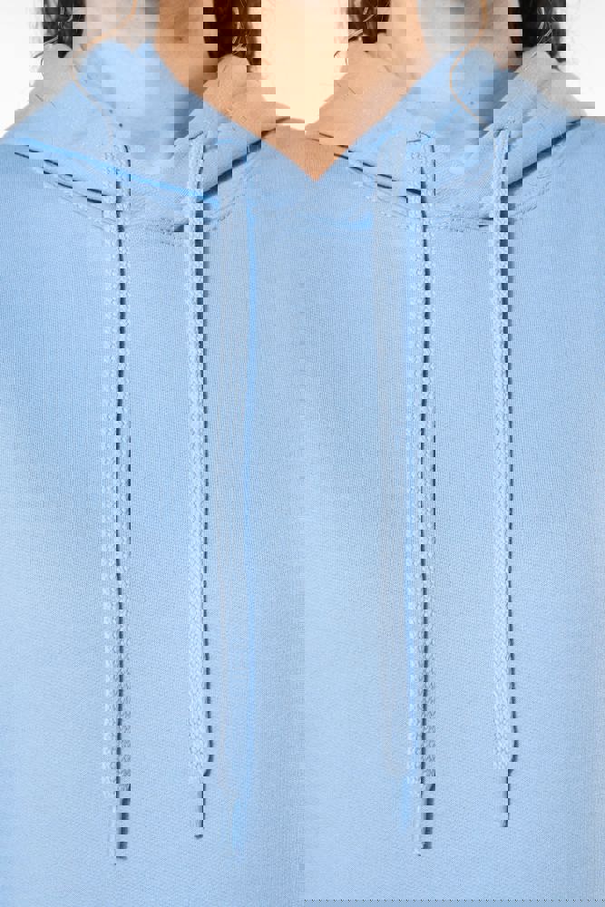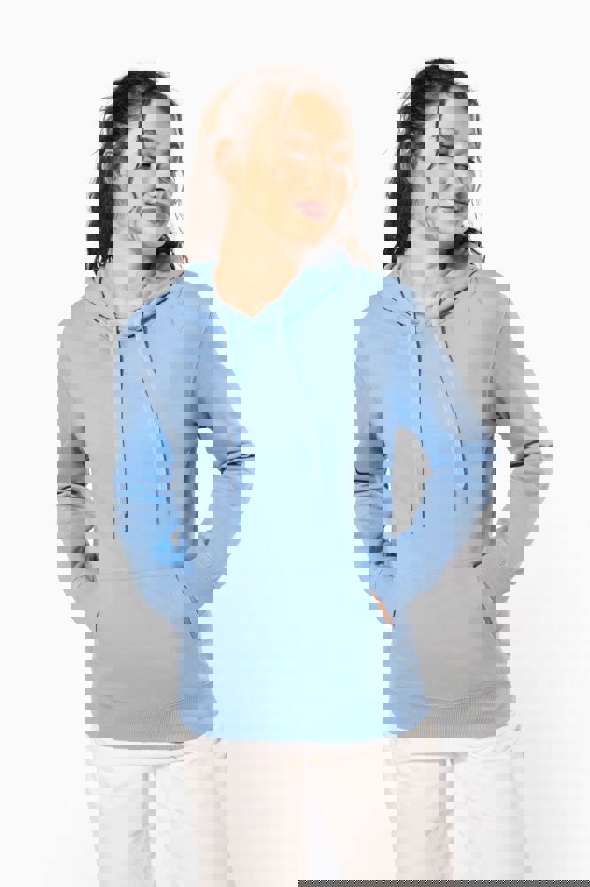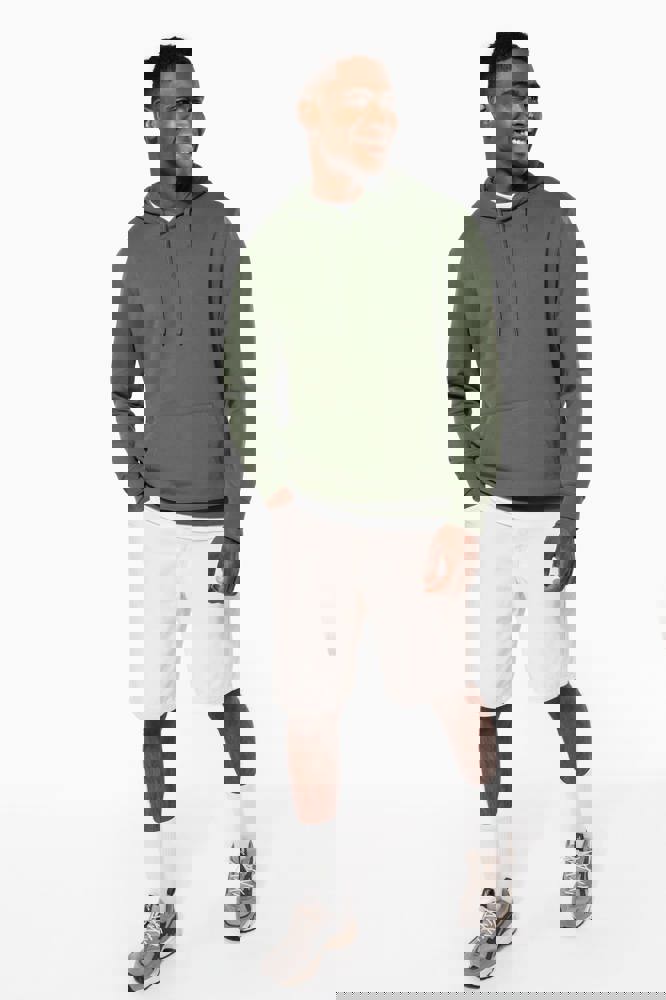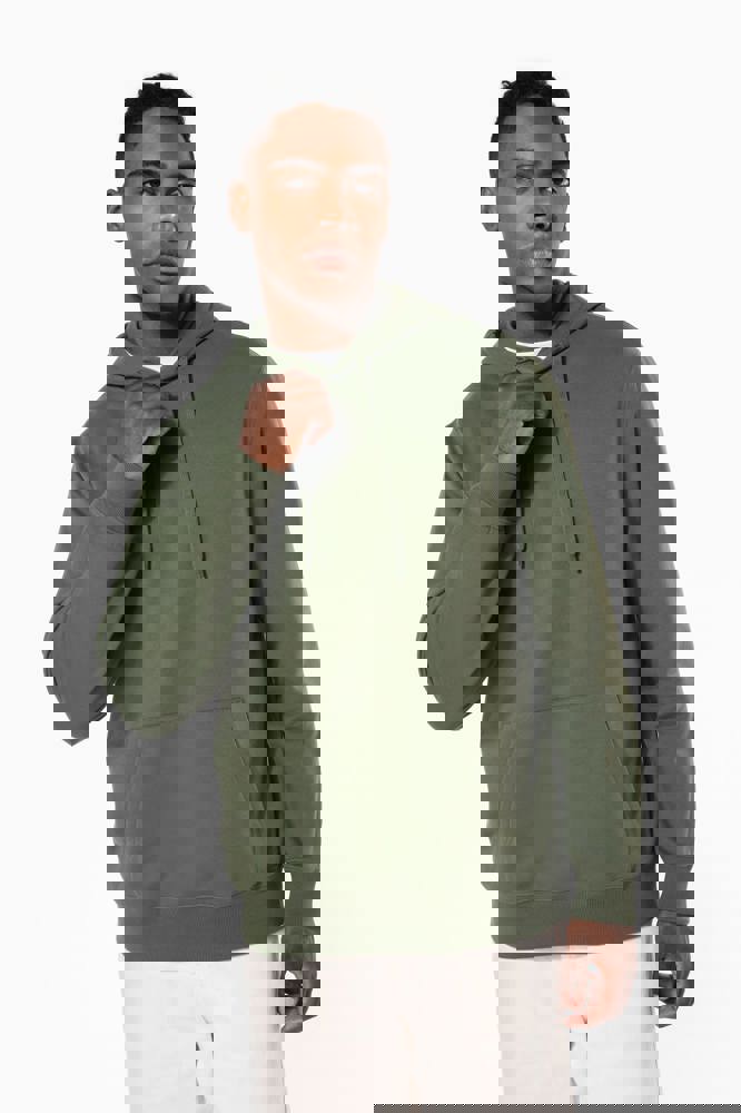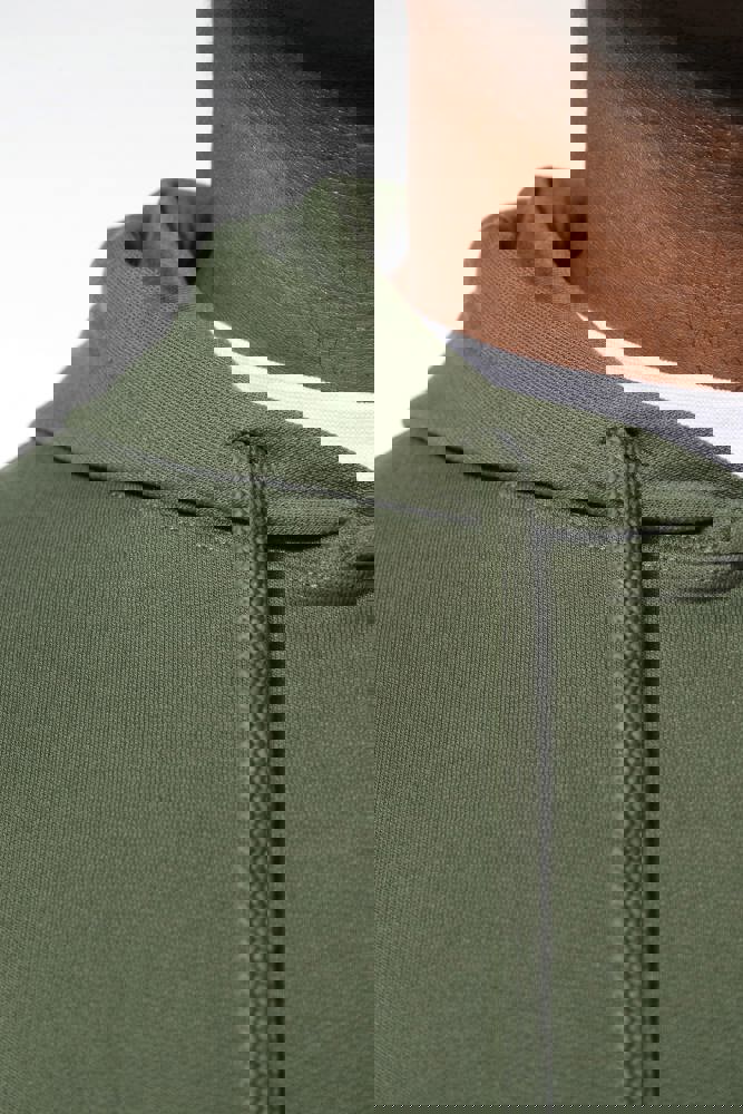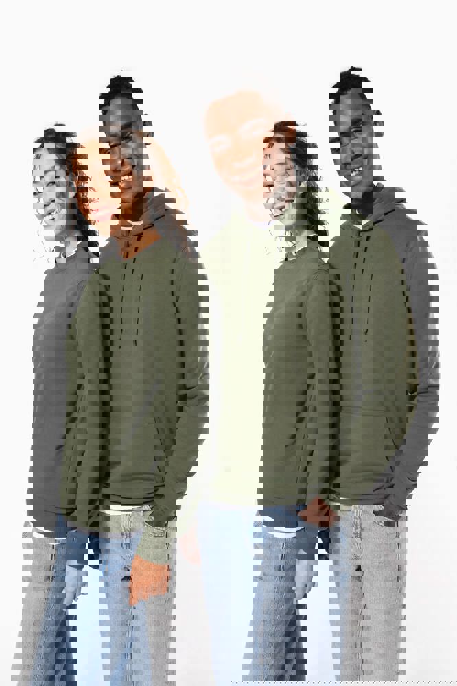 50 % Ringspun-Baumwolle / 50 % recycelter Polyester post-consumer. Gebürstetes Molton. Gerader Schnitt. Zugeschnitten genäht. 2x1 schlauchförmiges Strickbündchen für eine optimale Verarbeitung an Kragen, Ärmelabschlüssen und am unteren Saum. Kängurutasche. Gefütterte Kapuze aus Baumwollpolyester-Jersey mit flachem Kordelzug. Farblich abgestimmtes Jersey-Nackenband auf Krageninnenseite. Kein Markenetikett am Halsausschnitt, nur Größenangabe, zur einfacheren Veredelung.