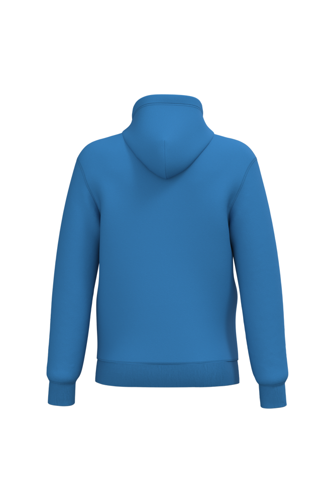 50 % Ringspun-Baumwolle / 50 % recycelter Polyester post-consumer. Gebürstetes Molton. Gerader Schnitt. Zugeschnitten genäht. 2x1 schlauchförmiges Strickbündchen für eine optimale Verarbeitung an Kragen, Ärmelabschlüssen und am unteren Saum. Kängurutasche. Reißverschluss aus Nylon. Gefütterte Kapuze aus Baumwollpolyester-Jersey mit flachem Kordelzug. Farblich abgestimmtes Jersey-Nackenband auf Krageninnenseite. Kein Markenetikett am Halsausschnitt, nur Größenangabe, zur einfacheren Veredelung.