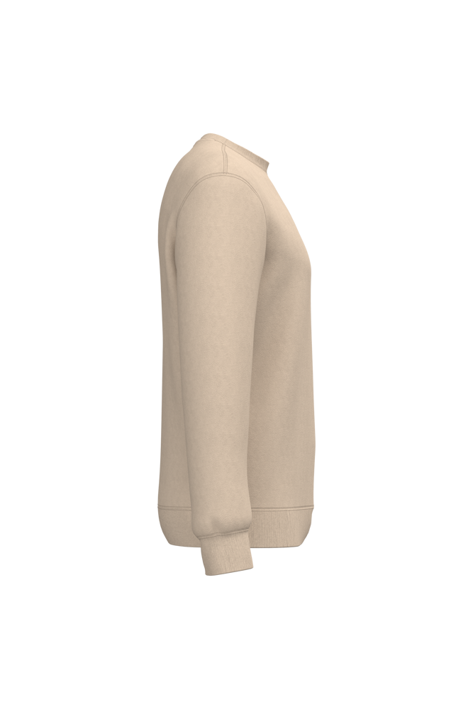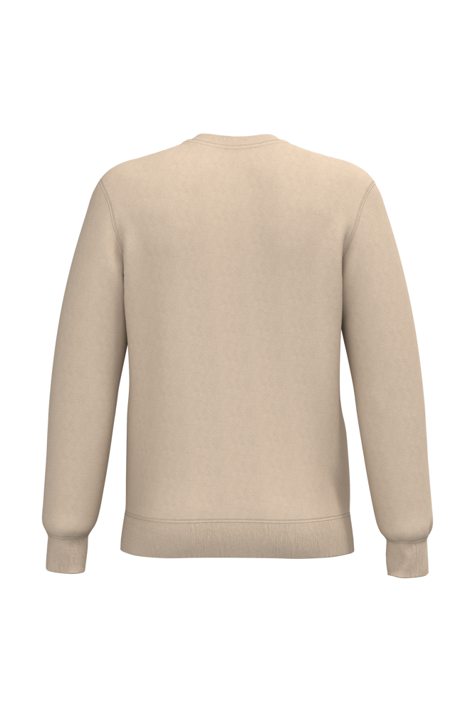 50 % Ringspun-Baumwolle / 50 % recycelter Polyester post-consumer. Gebürstetes Molton. Gerader Schnitt. Zugeschnitten genäht. 2x1 schlauchförmiges Strickbündchen für eine optimale Verarbeitung an Kragen, Ärmelabschlüssen und am unteren Saum. Farblich abgestimmtes Jersey-Nackenband auf Krageninnenseite. Kein Markenetikett am Halsausschnitt, nur Größenangabe, zur einfacheren Veredelung.