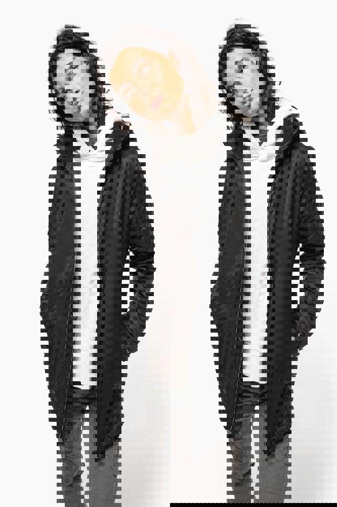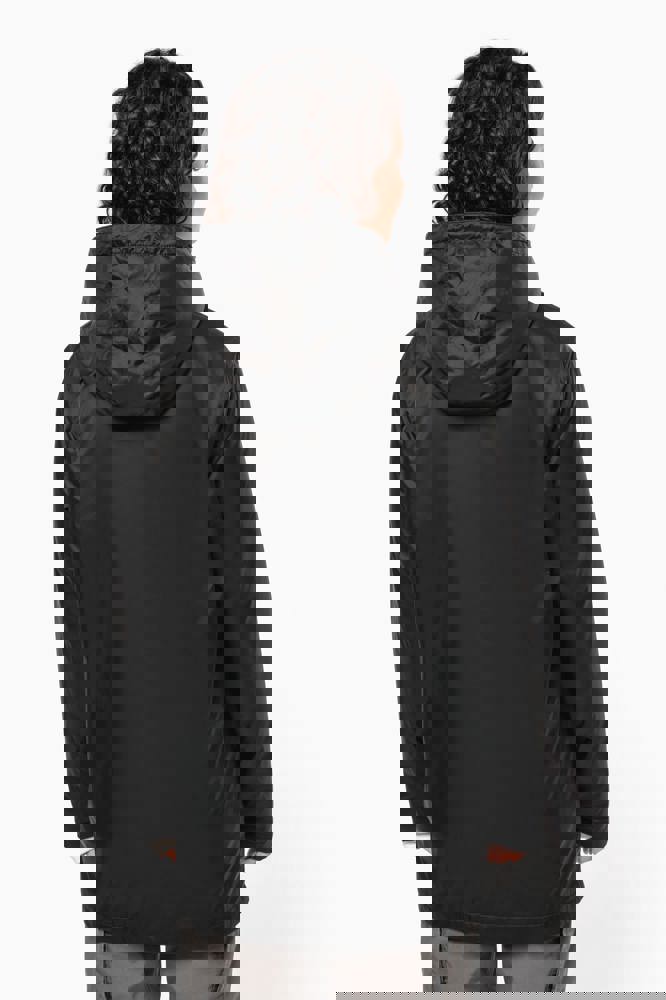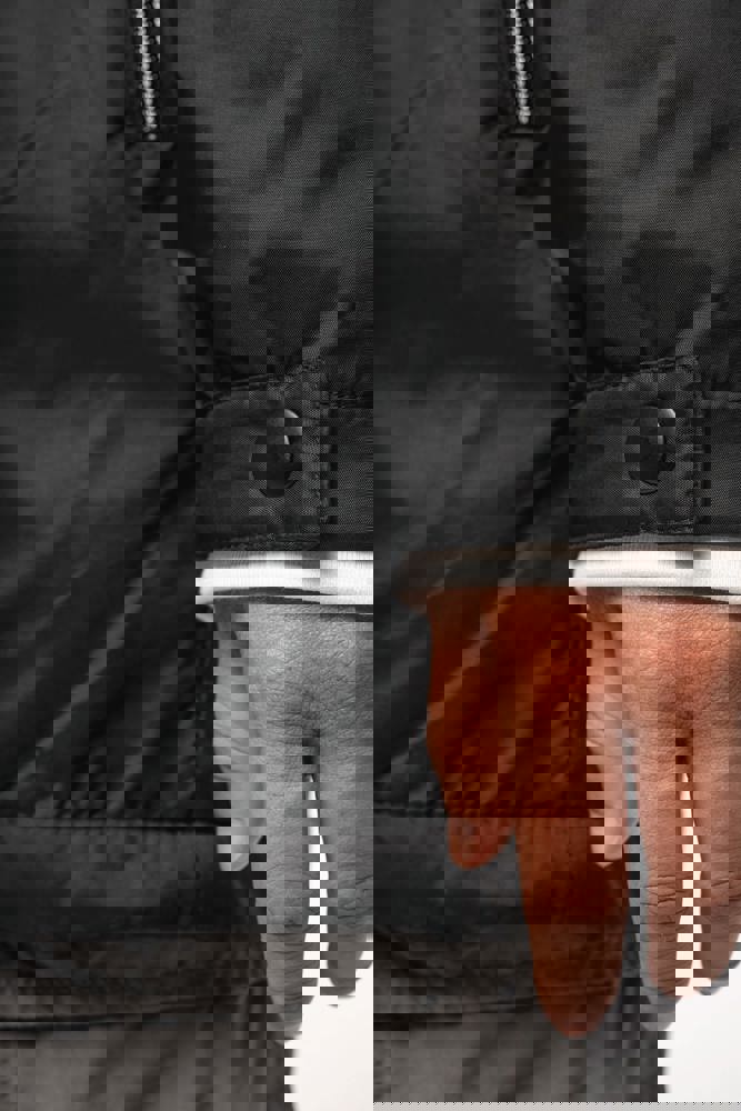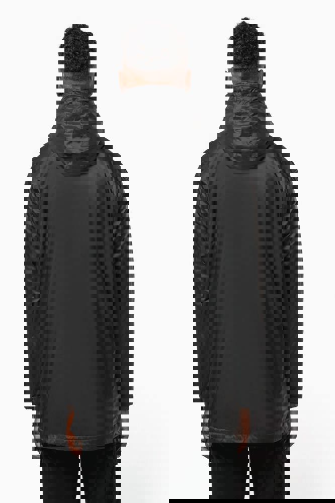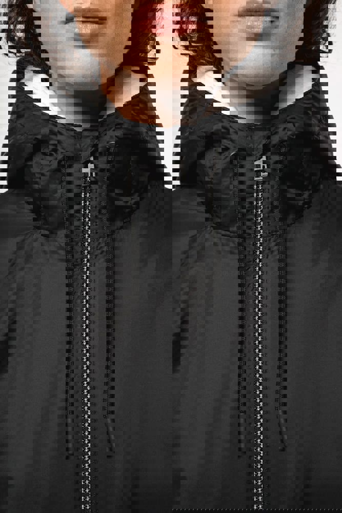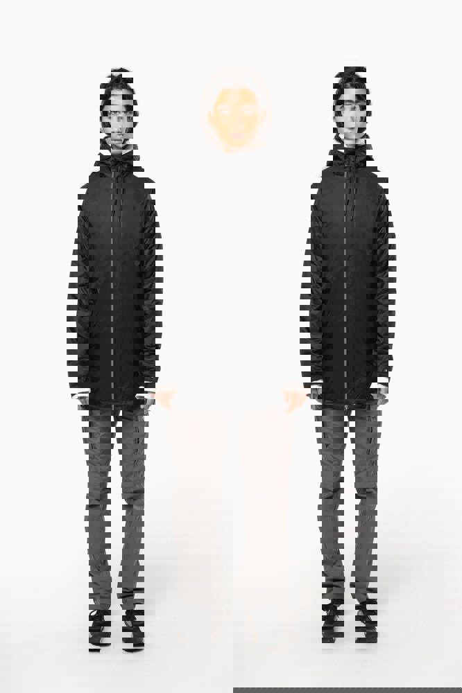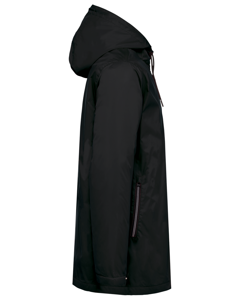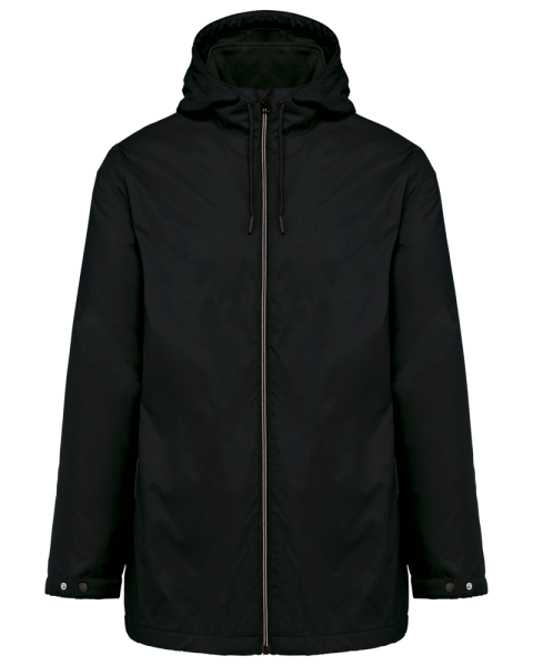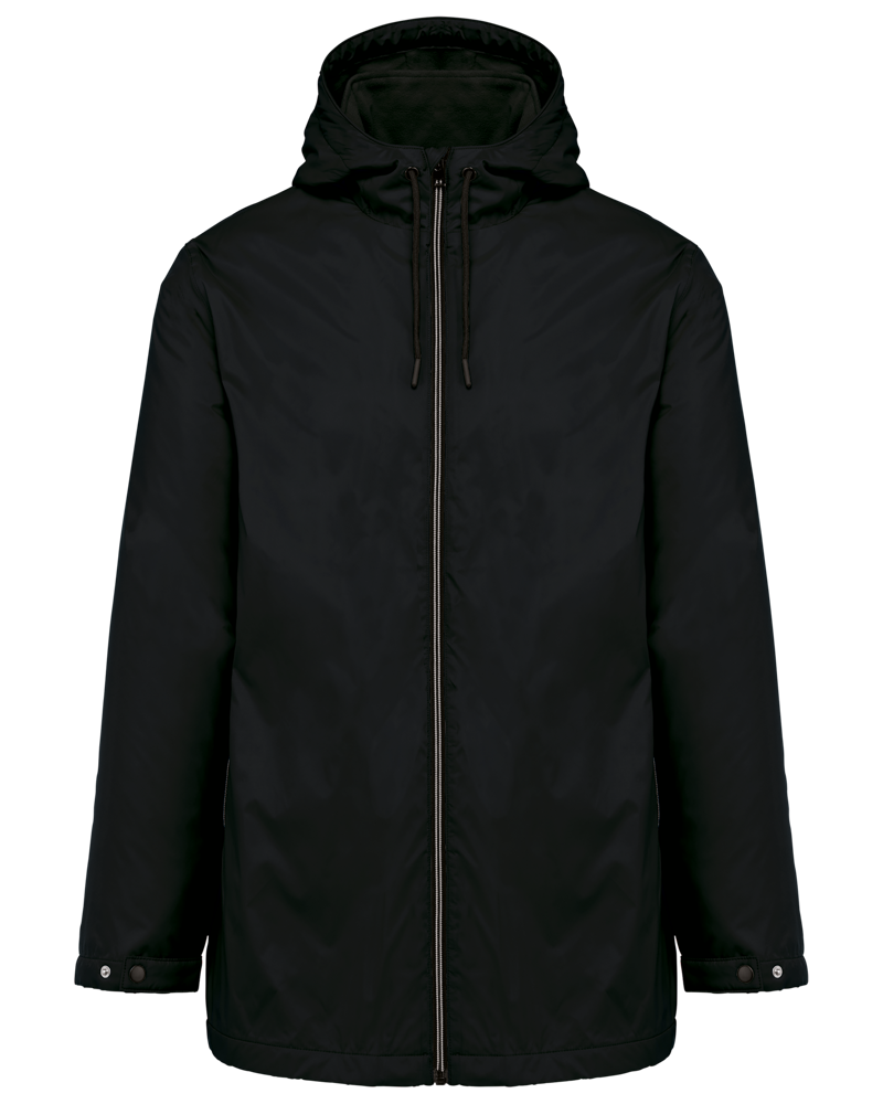 100 % Polyamid 210T mit Acrylbeschichtung. Futter aus 100 % Polyester-Mikrofleece. Gerader Schnitt. Futter an Rumpf, Kragen und Kapuze aus farblich abgestimmtem Mikrofleece. Wattierte Ärmel und Polyester-Futter. Schwarzer Reißverschluss mit silberfarbener Nylonkette. 2 Reißverschlusstaschen auf der Vorderseite. 1 Innentasche mit Klettverschluss. 3-Teilige Kapuze mit schwarzem Kordelzug. Verstellbare Ärmelbündchen mit 2 Druckknöpfen. Halbmondförmiger Halsausschnitt auf der Rückseite für eine einfache Markenveredelung auf der Innenseite. Befestigungshaken auf der Krageninnenseite. Unsichtbarer Reißverschluss zur Veredelung auf Brust und Saum. Markenetikett zum Abreißen.