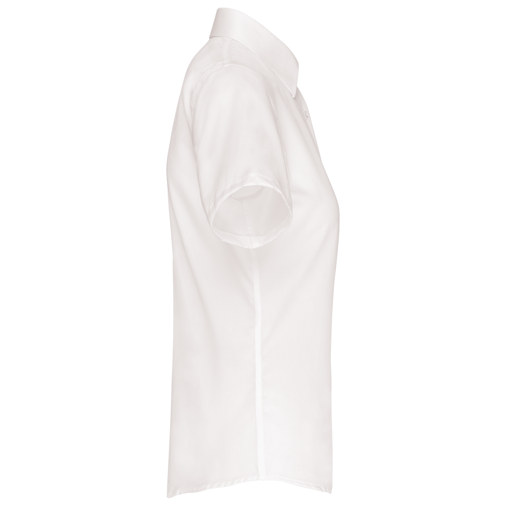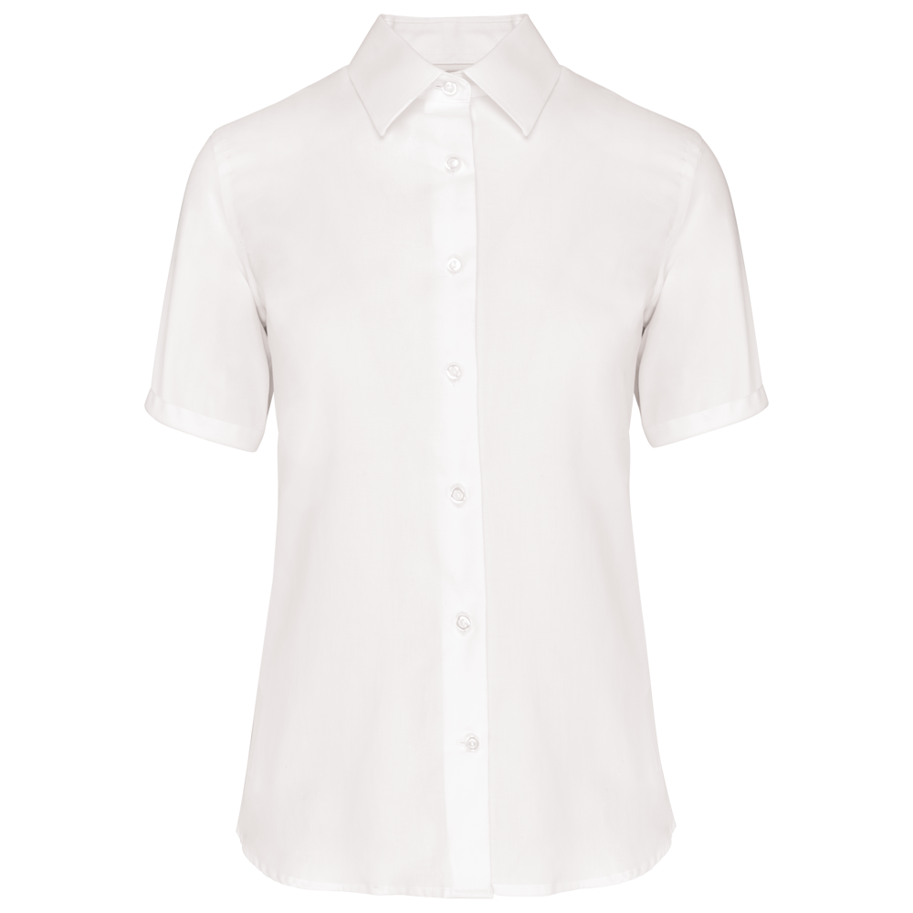 100% Baumwolle Micro Twill. Bügelfreie Bluse. Klassischer, knopfloser Kragen. Farblich abgestimmte Knöpfe. Nahtloser Saum an der Knopfleiste. 1 Ersatzknopf. Abgerundeter Saum.
