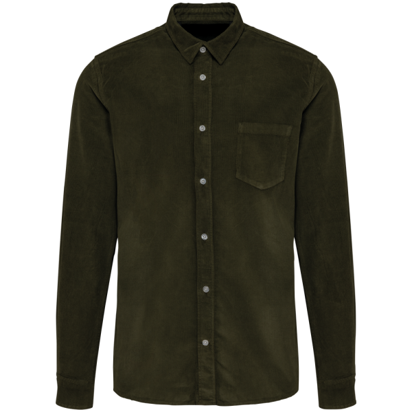 100 % Baumwolle. Stoff aus Kord. Gerader Schnitt. Brusttasche auf der linken Seite mit verstärkten Ecken. Versetzte Knopfleiste mit weißen Knöpfen in Perlmutt-Optik auf allen Farben. Anpassbare, abgerundete Manschetten mit zwei Knöpfen sowie Manschettenschlitz mit Knopf in Perlmutt-Optik. Doppelte Passe am oberen Rücken. Einfache Ziernaht am abgerundeten unteren Saum. Färbung des fertig genähten Kleidungsstücks: leichte Farbabweichungen der Teile möglich. Kein Markenetikett am Halsausschnitt, nur Größenangabe, zur einfacheren Veredelung.