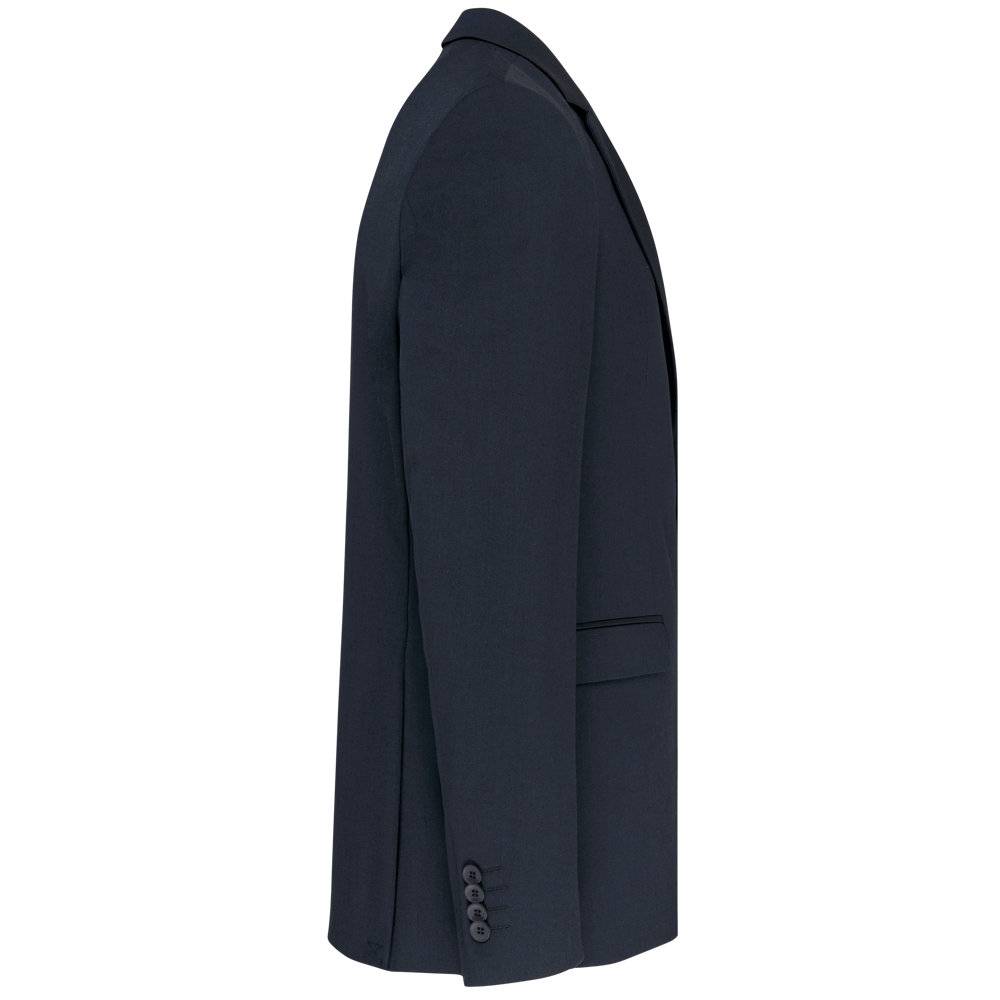 64 % Polyester / 34 % Viskose / 2 % Elasthan. Futter:100 % Polyester-Taft. Jacke mit 2 Knöpfen. 2 Paspeltaschen mit Klappe vorne.1 Brusttasche. 2 Innentaschen mit Knopf und 1 Handytasche. Ärmelbündchen mit 4 Knöpfen. 2 Schlitze am Rücken. 1 unsichtbarer Reißverschluss an der linken Seite zur Veredelung.