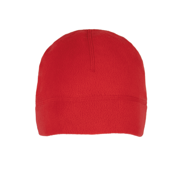 100 % recycelter Polyester. Mikrofleece-Mütze. Markenetikett zum Abreißen.