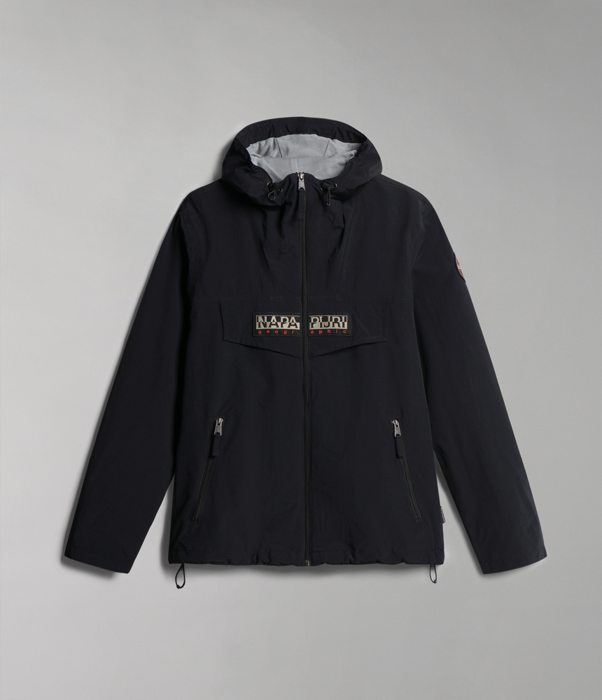 100 % Polyamid. Innenfutter aus Netz, wasserfeste Nähte und verstellbare Säume sowie Kapuze. Aus einem wasserdichten Stoff mit einer Seitenmembran hinten, Seitentaschen und einem Reißverschluss vorn.