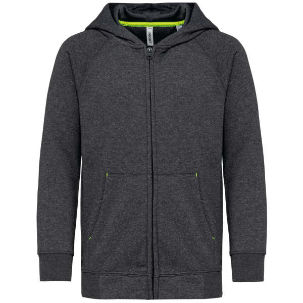 65 % Polyester/35 % Baumwolle. Gebürsteter Molton. Gekämmte Baumwolle. Vortex-Faden. Gerader Schnitt. Raglanärmel. Nylon-Reißverschluss. Mit Ton-in-Ton-Netzstoff gefütterte Kapuze. Nackenband auf der Innenseite der Kapuze und Vertiefungen in fluoreszierenden Farben auf den Taschen. Kängurutaschen mit fluoreszierender Handytasche. 2 x 2 doppelte Rippstrickbündchen an den Ärmeln und am unteren Saum. Halbmondförmiger Halsausschnitt auf der Rückseite für eine einfache Markenveredelung auf der Innenseite. Markenetikett zum Abreißen.