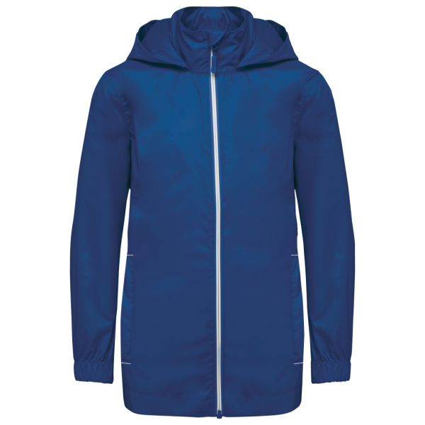 100% mattes 210T PU-beschichtetes Polyester. Wasserdichtes Gewebe 1500 mm. Wasserdichte, verschweißte Schulternähte und Kapuze. 2 seitliche Reißverschlusstaschen und Reißverschlussanhänger. 2 Innentaschen. Frontverschluss mit kontrastfarbenem Reißverschluss. Kapuze im Kragen mit Klettverschluss. Elastisches Bündchen. Abnehmbares Markenetikett.