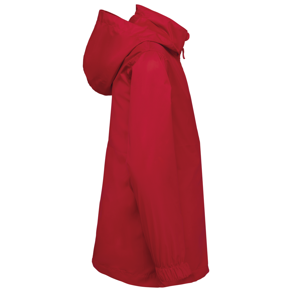 100% mattes 210T PU-beschichtetes Polyester. Wasserdichtes Gewebe 1500 mm. Wasserdichte, verschweißte Schulternähte und Kapuze. 2 seitliche Reißverschlusstaschen und Reißverschlussanhänger. 2 Innentaschen. Frontverschluss mit kontrastfarbenem Reißverschluss. Kapuze im Kragen mit Klettverschluss. Elastisches Bündchen. Abnehmbares Markenetikett.