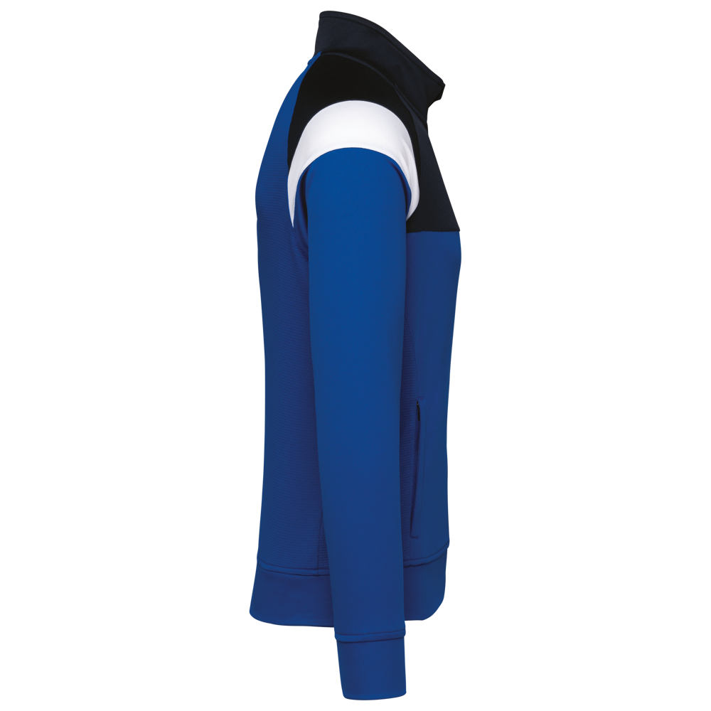 100 % Polyester-Interlock. Gerader Schnitt. Verschluss vorne mit umgekehrtem Reißverschluss aus farblich abgestimmtem Nylon. Raglanärmel mit farblich abgesetzten Schultereinsätzen. Farblich abgesetzter Brust- und Schulterausschnitt. 2 Taschen mit Reißverschluss vorne. Einsätze aus strukturiertem Stoff an den Seiten und im Rücken. Reißverschlussabdeckung am oberen Rand des Kragens für zusätzlichen Komfort. Abtrennbares Marken-Label für eine einfache Veredelung.