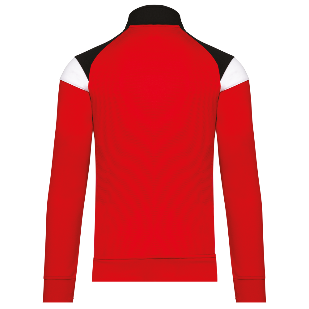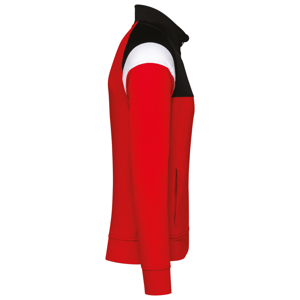100 % Polyester-Interlock. Gerader Schnitt. Verschluss vorne mit umgekehrtem Reißverschluss aus farblich abgestimmtem Nylon. Raglanärmel mit farblich abgesetzten Schultereinsätzen. Farblich abgesetzter Brust- und Schulterausschnitt. 2 Taschen mit Reißverschluss vorne. Einsätze aus strukturiertem Stoff an den Seiten und im Rücken. Reißverschlussabdeckung am oberen Rand des Kragens für zusätzlichen Komfort. Abtrennbares Marken-Label für eine einfache Veredelung.