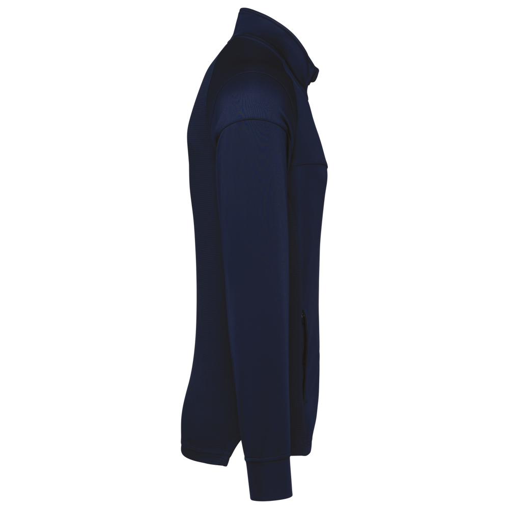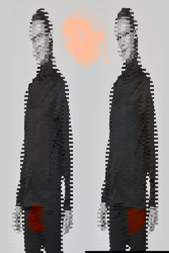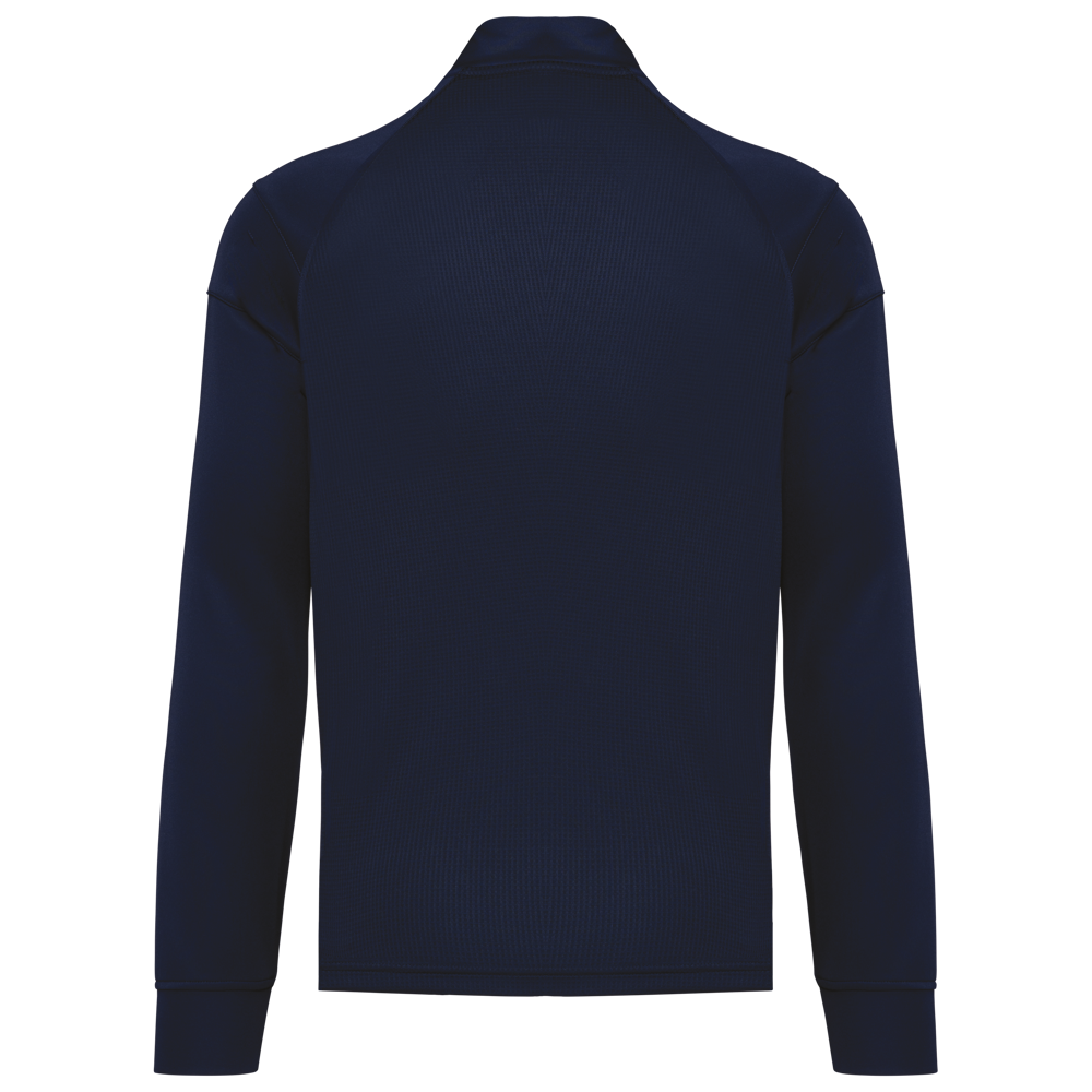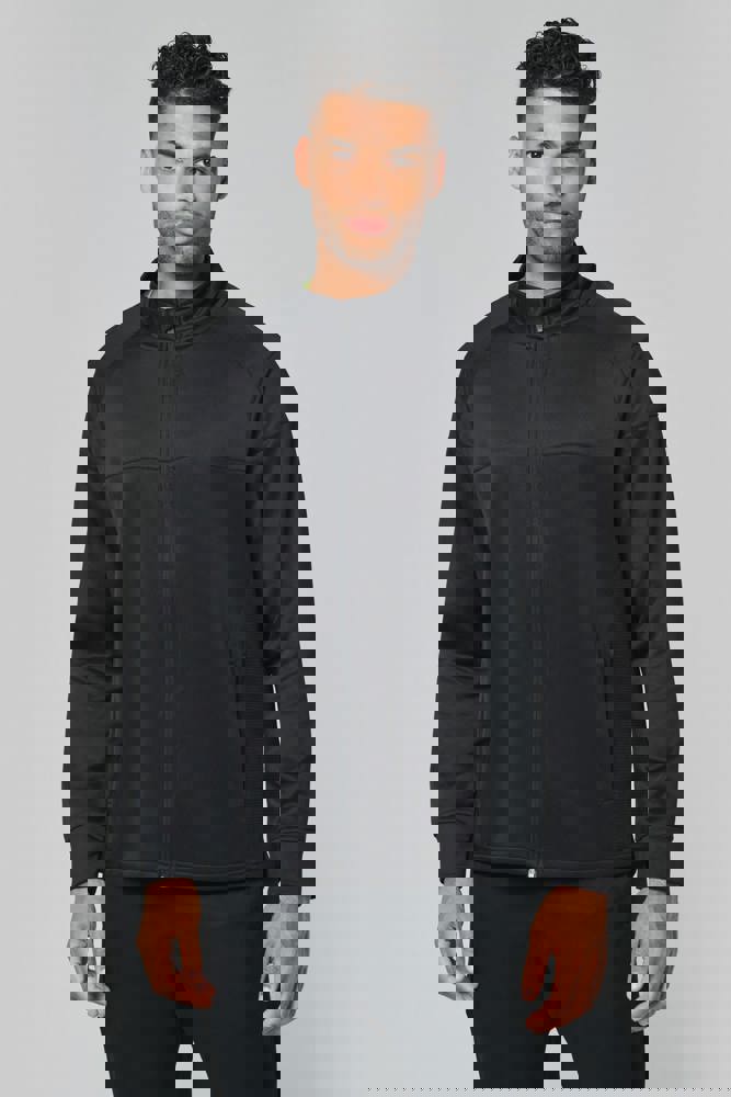 96 % Polyester / 4 % Elasthan. Gerader Schnitt. Vorderer Verschluss mit umgekehrtem Reißverschluss aus recyceltem, farblich abgestimmtem Nylon. Raglanärmel mit Schulterausschnitten. Ärmelbündchen aus Hauptmaterial. 2 Taschen mit Reißverschluss vorne. Farblich abgestimmter strukturierter Stoff an der Seite und im Rücken. Reißverschlussabdeckung am oberen Rand des Kragens für zusätzlichen Komfort. Unterer Saum. Verlängerter Rücken und Seitenschlitze. Abtrennbares Marken-Label für eine einfache Veredelung.
