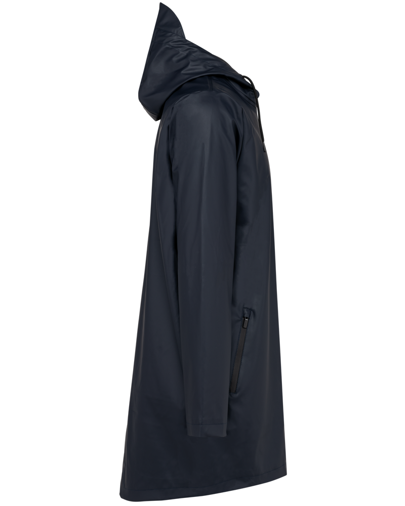 100 % Polyurethan-Beschichtung auf der Außensite und 100 % Polyester auf der Innenseite. Wärmeverschweißte Nähte. Vollständig wasserdicht bei 5.000 mm. Futter aus 100 % Polyester. Kapuze mit Schutzvisier und Kordelzug, Stopper mit Metallkappe. Reißverschluss mit wasserdichter Abdeckung, der bis zur Kapuze reicht, mit Zipper-Abdeckung oben. 2 Seitentaschen mit vollständig wasserdichtem Reißverschluss und Zipper-Abdeckung. Belüftungsösen unter der Achsel. Längeres Rückenteil mit Dehnfalte am Saum. Schlaufe auf der Innenseite des Halsausschnitts zum Aufhängen der Jacke. Patch zur Veredelung auf der Innenseite oben am Rücken. Reißverschluss zur Veredelung innen, hinten am Saum und auf der Brusttasche. Kein Markenetikett, nur Größenkennzeichnung um die Veredelung zur erleichtern.