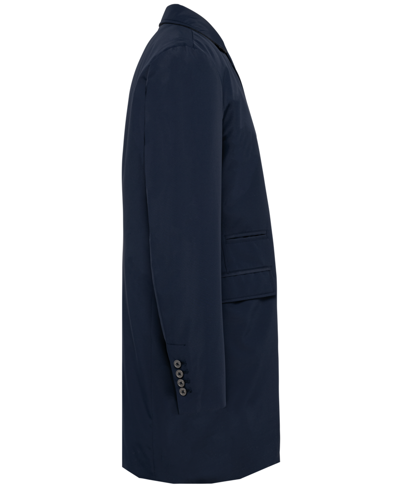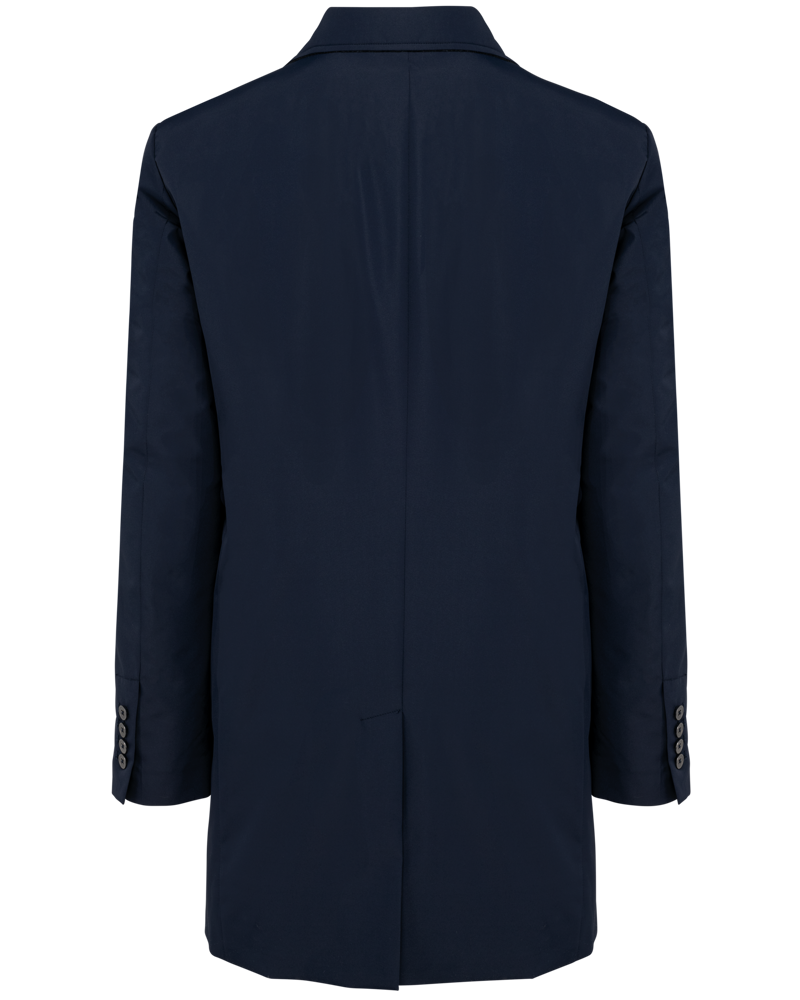 100 % Polyester. 3 verklebte Lagen. Vollständig wasserdichter Stoff 8.000 mm. Thinsulate®-Futter. Windjacke mit Kostümkragen und Kragen mit kontrastfarbenem Filz auf der Innenseite. Metallknöpfe auf der Vorderseite. Metallknöpfe an den Ärmelbündchen. 2 Fronttaschen mit Klappe und 1 Paspeltasche rechts. Brusttasche mit Reißverschluss. Schlitz unten am Rücken mit Druckknopf. Schlaufe am Halsausschnitt zum Aufhängen des Trenchcoats. Reißverschluss zur Veredelung innen, hinten am Saum und auf der Brusttasche. Patch zur Veredelung oben am Rücken. Kein Markenetikett, nur Größenkennzeichnung für eine leichtere Veredelung.