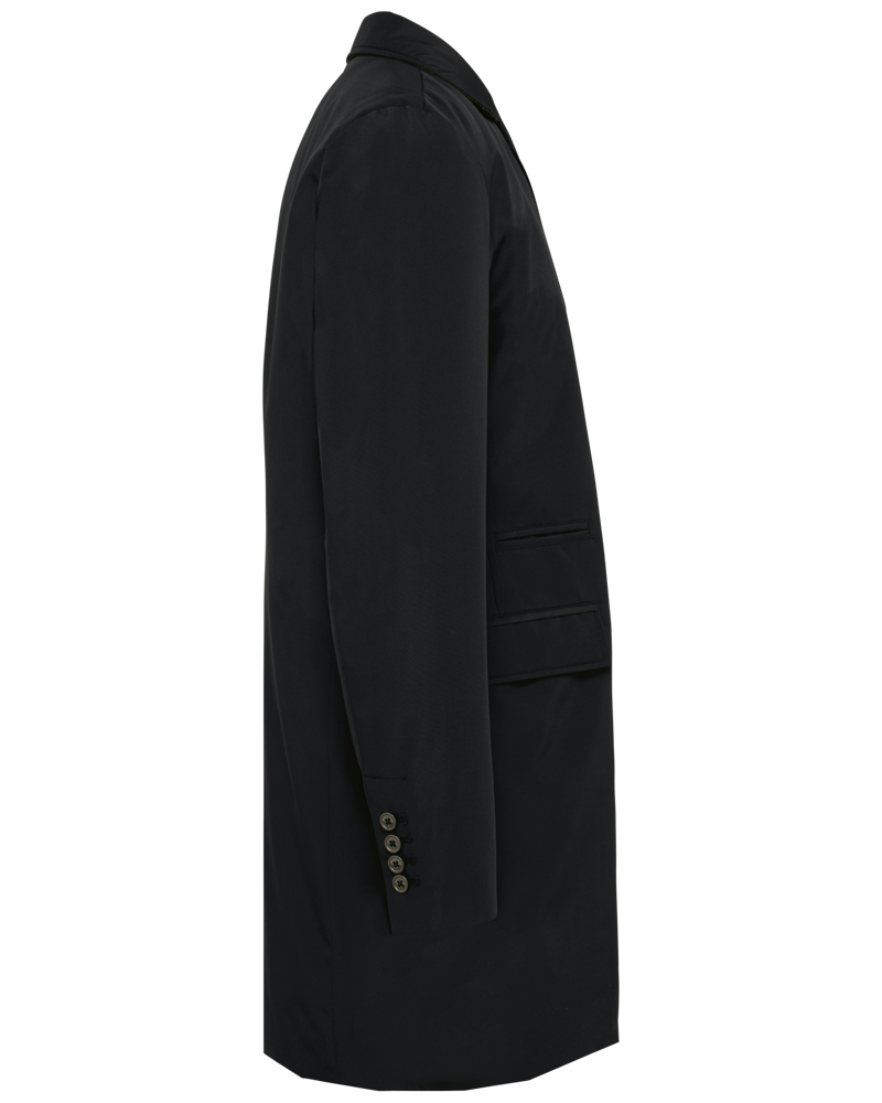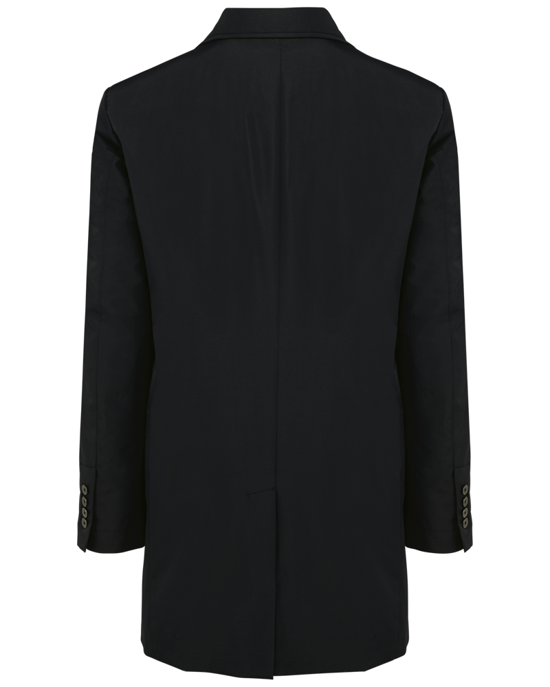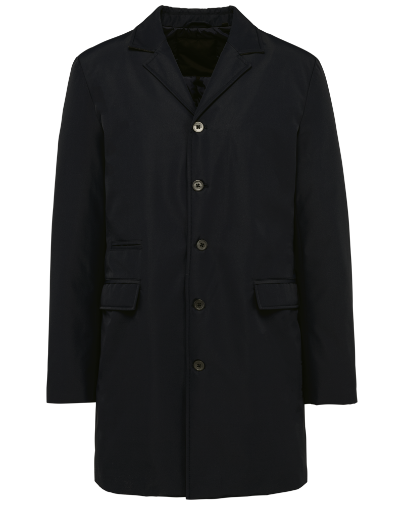 100 % Polyester. 3 verklebte Lagen. Vollständig wasserdichter Stoff 8.000 mm. Thinsulate®-Futter. Windjacke mit Kostümkragen und Kragen mit kontrastfarbenem Filz auf der Innenseite. Metallknöpfe auf der Vorderseite. Metallknöpfe an den Ärmelbündchen. 2 Fronttaschen mit Klappe und 1 Paspeltasche rechts. Brusttasche mit Reißverschluss. Schlitz unten am Rücken mit Druckknopf. Schlaufe am Halsausschnitt zum Aufhängen des Trenchcoats. Reißverschluss zur Veredelung innen, hinten am Saum und auf der Brusttasche. Patch zur Veredelung oben am Rücken. Kein Markenetikett, nur Größenkennzeichnung für eine leichtere Veredelung.