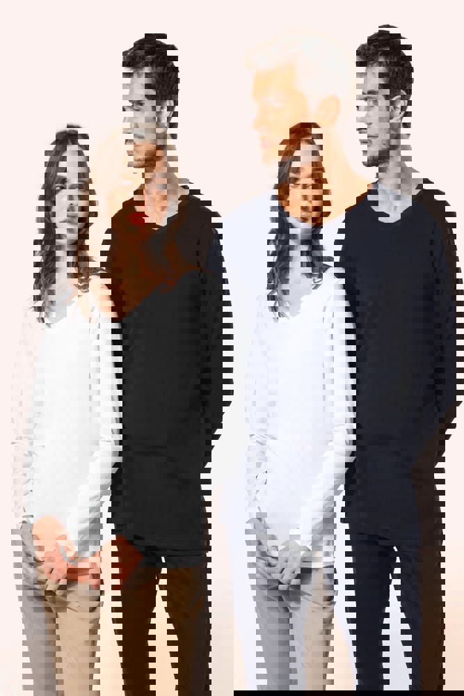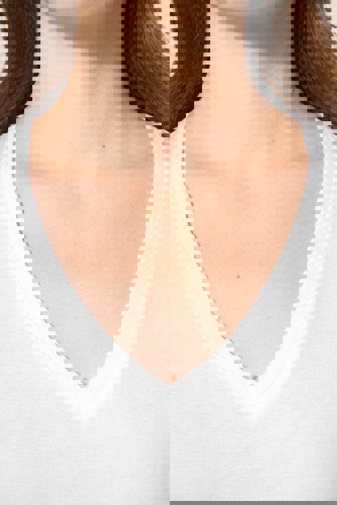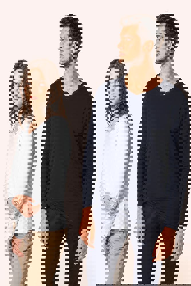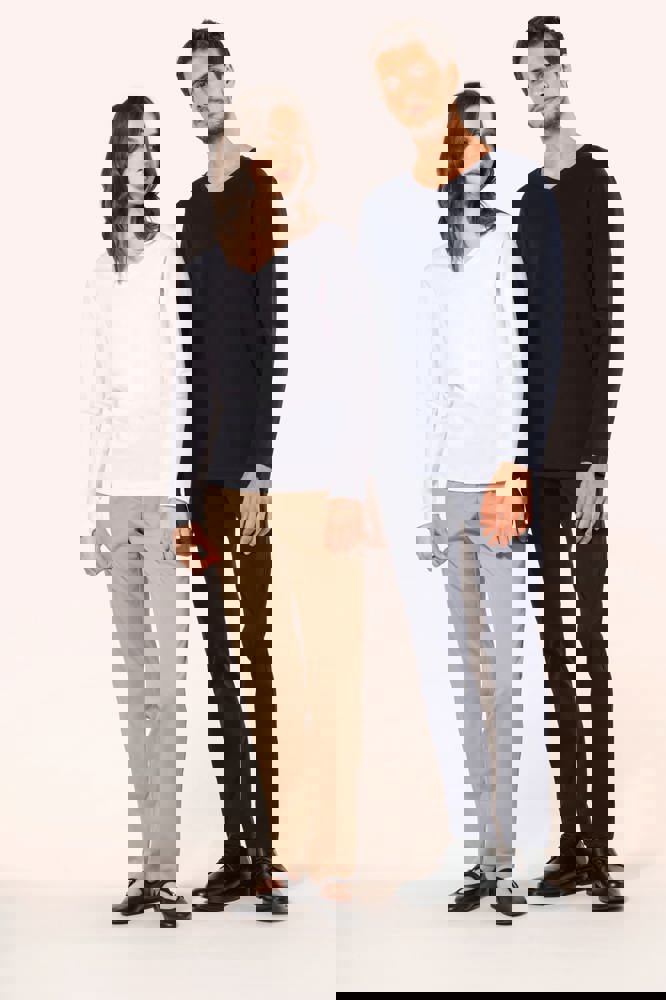 100 % Baumwolle. Gekämmte Supima®-Baumwolle. Sehr feiner, hochwertiger Jersey-Stoff mit einer weichen, seidenzarten Textur. Geschnitten-genähte Struktur. V-Ausschnitt mit farblich abgestimmtem Nackenband. Verstärkte Schulternaht mit Silikonband. Abschluss an den Ärmelbündchen mit Saum mit doppelter Ziernaht. Kein Markenetikett am Kragen, nur Größenkennzeichnung, für eine leichtere Veredelung.