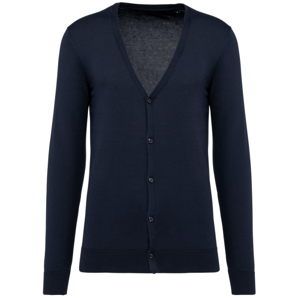 100 % Supima®-Baumwolle. Gekämmte Baumwolle. 12 gg Strick. Hochwertiges Material. Fully-fashioned: In der Form gestrickt und mit einer Mesh-Maschine zusammengesetzt. 1 x 1 Rippstrick an Halsausschnitt, Ärmelbündchen und Saum. Knopfleiste mit Kunststoffknöpfen. Farblich abgestimmt.