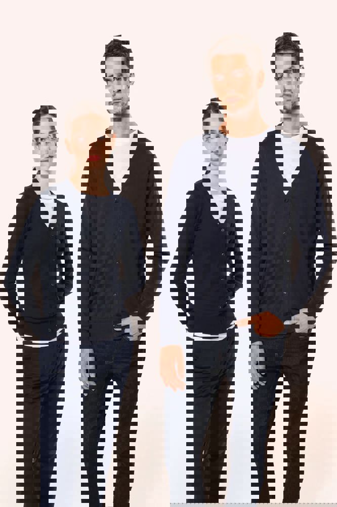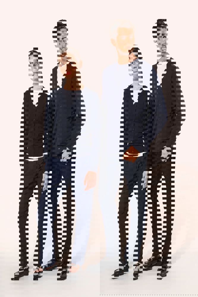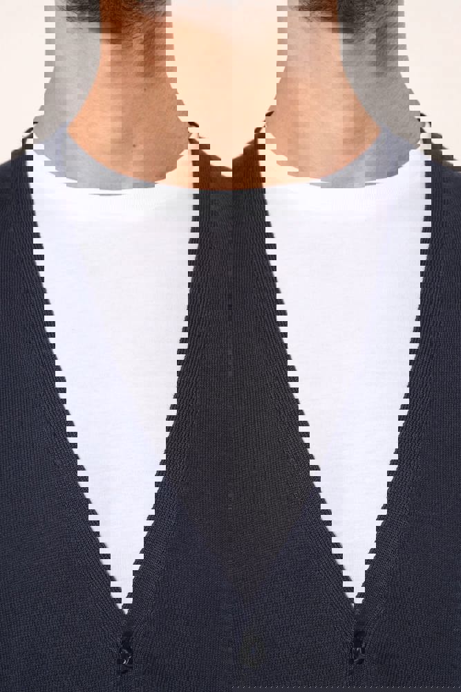 100 % Supima®-Baumwolle. Gekämmte Baumwolle. 12 gg Strick. Hochwertiges Material. Fully-fashioned: In der Form gestrickt und mit einer Mesh-Maschine zusammengesetzt. 1 x 1 Rippstrick an Halsausschnitt, Ärmelbündchen und Saum. Knopfleiste mit Kunststoffknöpfen. Farblich abgestimmt.