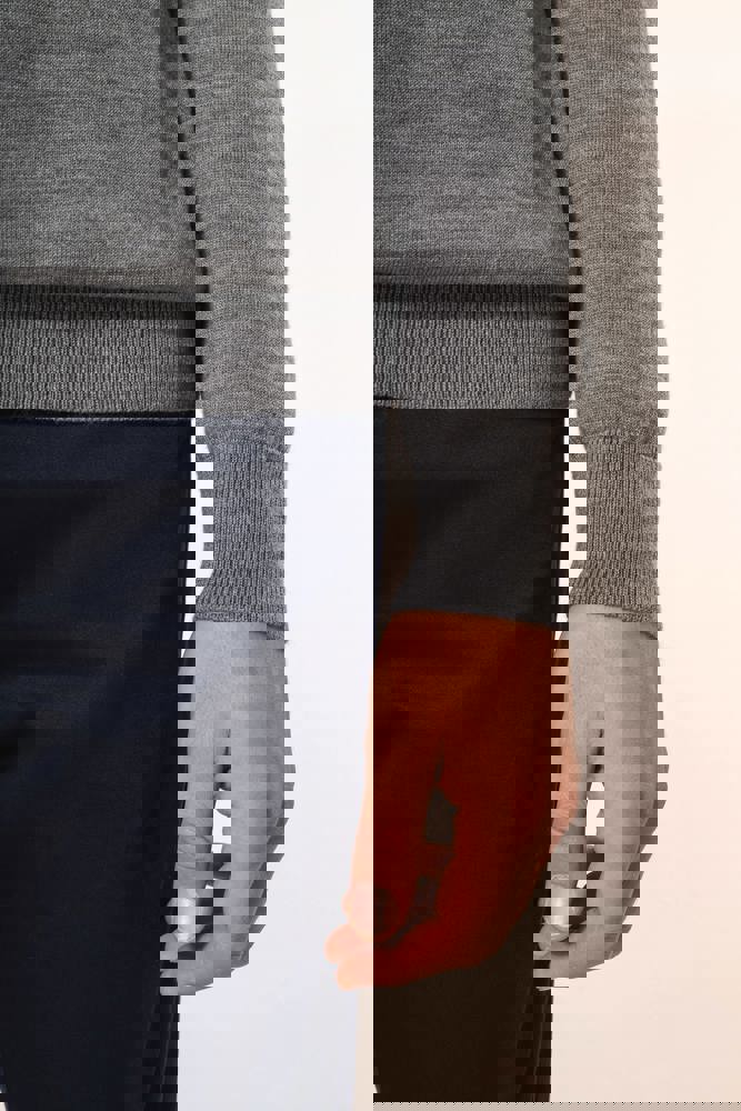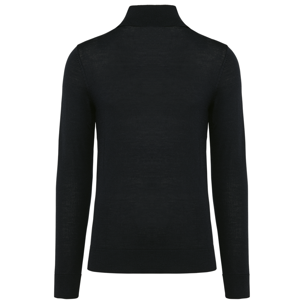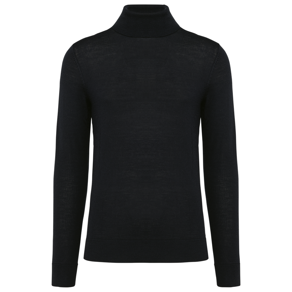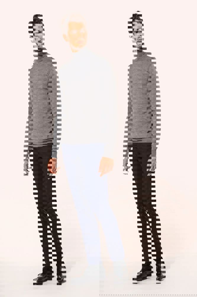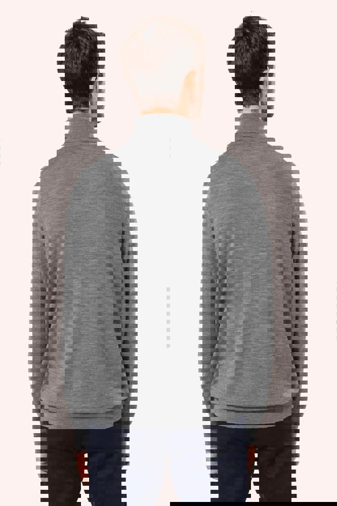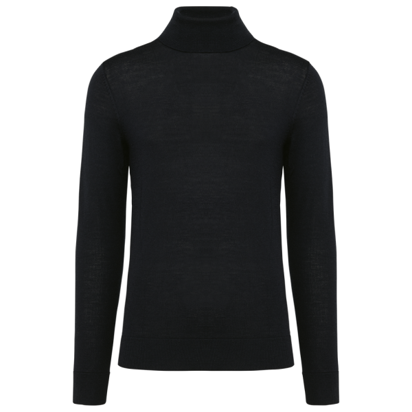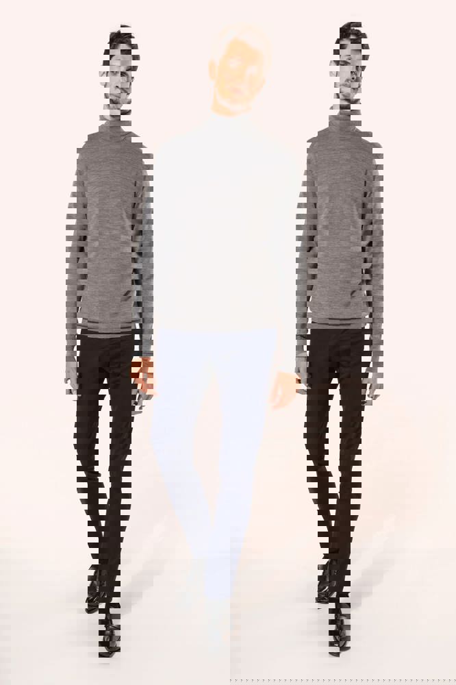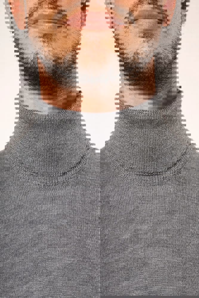 100 % Merinowolle. Extra feine, gekämmte Wolle. 14 gg Strick. Fully-fashioned: In der Form gestrickt und mit einer Mesh-Maschine zusammengesetzt. 1 x 1 Rippstrick an Rollkragen und Saum.