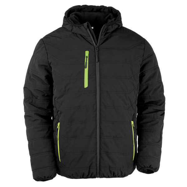 Stoff – Außenseite: 100 % recycelter TOPGREEN-Polyester. Isolierung: 160 g/m² – 100 % recycelter REPREVE®-Polyester. Rumpf aus Steppmaterial mit Fleecefutter. YKK-Reißverschluss mit Kinnschutz. Kontrastfarbene Reißverschlusstaschen. Kapuze mit Fleecefutter. Ärmelbündchen mit eingefassten Säumen. TPU-Membran als Schutz bei schlechtem Wetter.