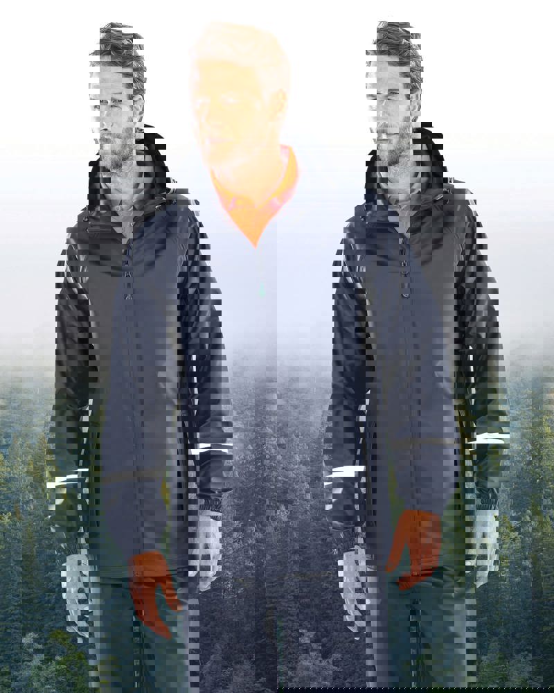 100% Polyurethan (Außenseite) / 100% recyceltes Polyester (Rückseite). Diese wasserdichte Jacke ist mit reflektierenden Armbinden, einer Kapuze mit Kordelzug und verschweißten Nähten ausgestattet. Sie bietet zuverlässigen Schutz vor Regen und ist dabei bequem zu tragen. Sie wird aus recycelten Materialien hergestellt und vereint Stil, Funktionalität und Umweltfreundlichkeit.