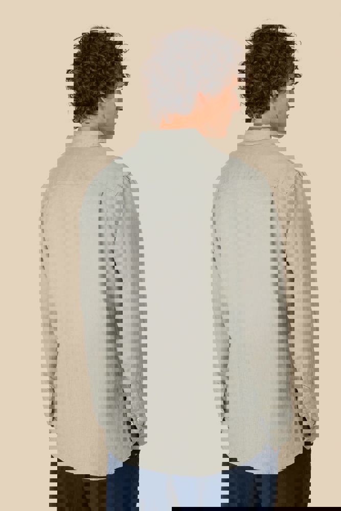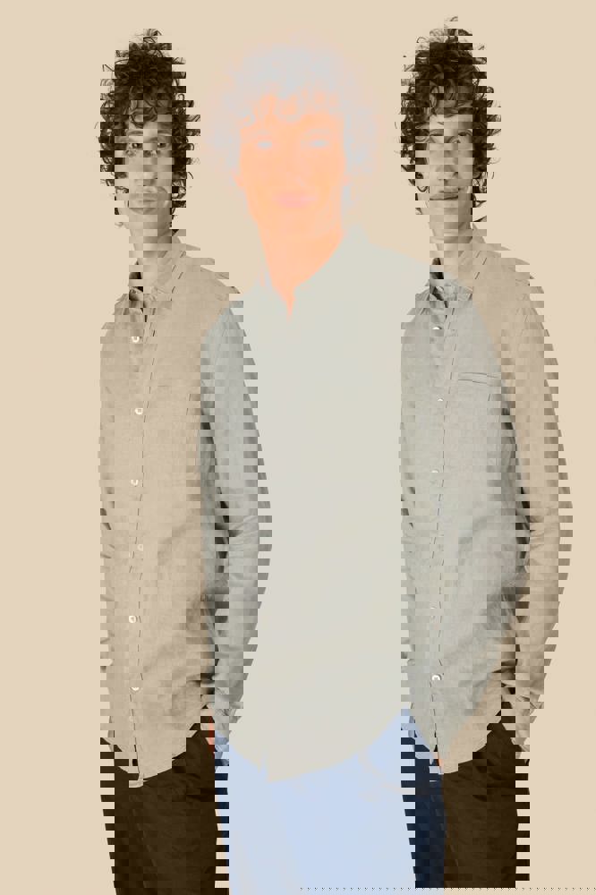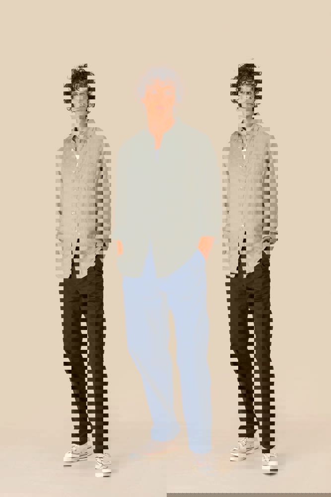 100 % Leinen. Gewebt. Vorgewaschenes Hemd. Gerader Schnitt. Klassische Knopfleiste mit Perlmuttknöpfen. Brusttasche links Rückenpasse mit Dehnfalte. Geknöpfte Manschette mit Kapuziner-Patte. Kontrastfarbene Borte in der Farbe „Natural“ auf der Innenseite des Kragenstegs. Die Farbe Linen wurde nicht gefärbt und kann deshalb je nach Produkt unterschiedlich sein.