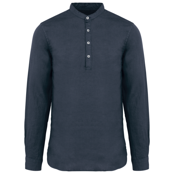 SP507 - Ausgewaschenes Herren-Hemd aus Leinen mit Maokragen