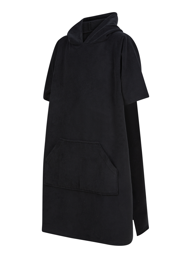 100% Polyester. Polyester-Mikrofaser. Poncho mit integrierter Kapuze. Kängurutasche mit Handyfach auf der Innenseite nur für die Größen 6/9 und 10/13 Jahre. Seitliche Schlitze.